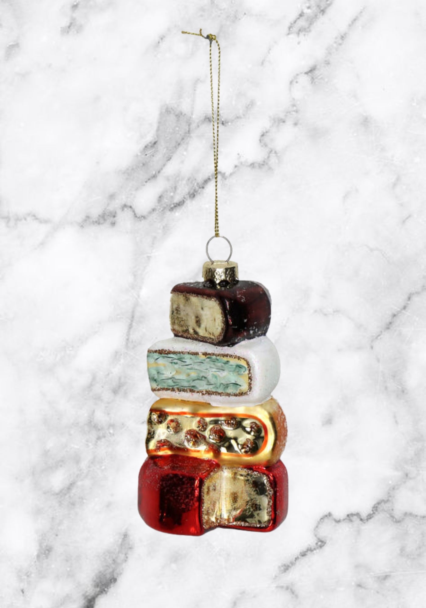 No cheese lover can call themselves a true cheese lover unless they have this glass decoration hanging in their Christmas tree over the festive season. It's crafted to look like a pile of four wheels of your all time favourite fromages like Gouda, Brie or Cheddar and with a Golden Cenarth shimmer finish.