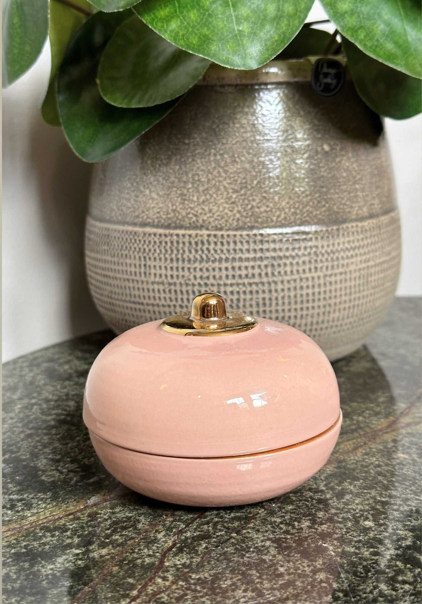 No, we don't mean a bluetit bird.. This pink trinket box wasn't designed to be shaped like a particularly pert breast but we decided that with the gold on the lid looking like a nipple we had to rename it as such.