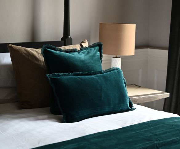 A gorgeous 2 bed cottage just a 10 minute walk from The Roman Baths & Bath Abbey with a signature colour of verdant green. To get this look, shop eucalyptus green velvet soft accessories, our pea green enamel oven tray and silk Dagny cushions.