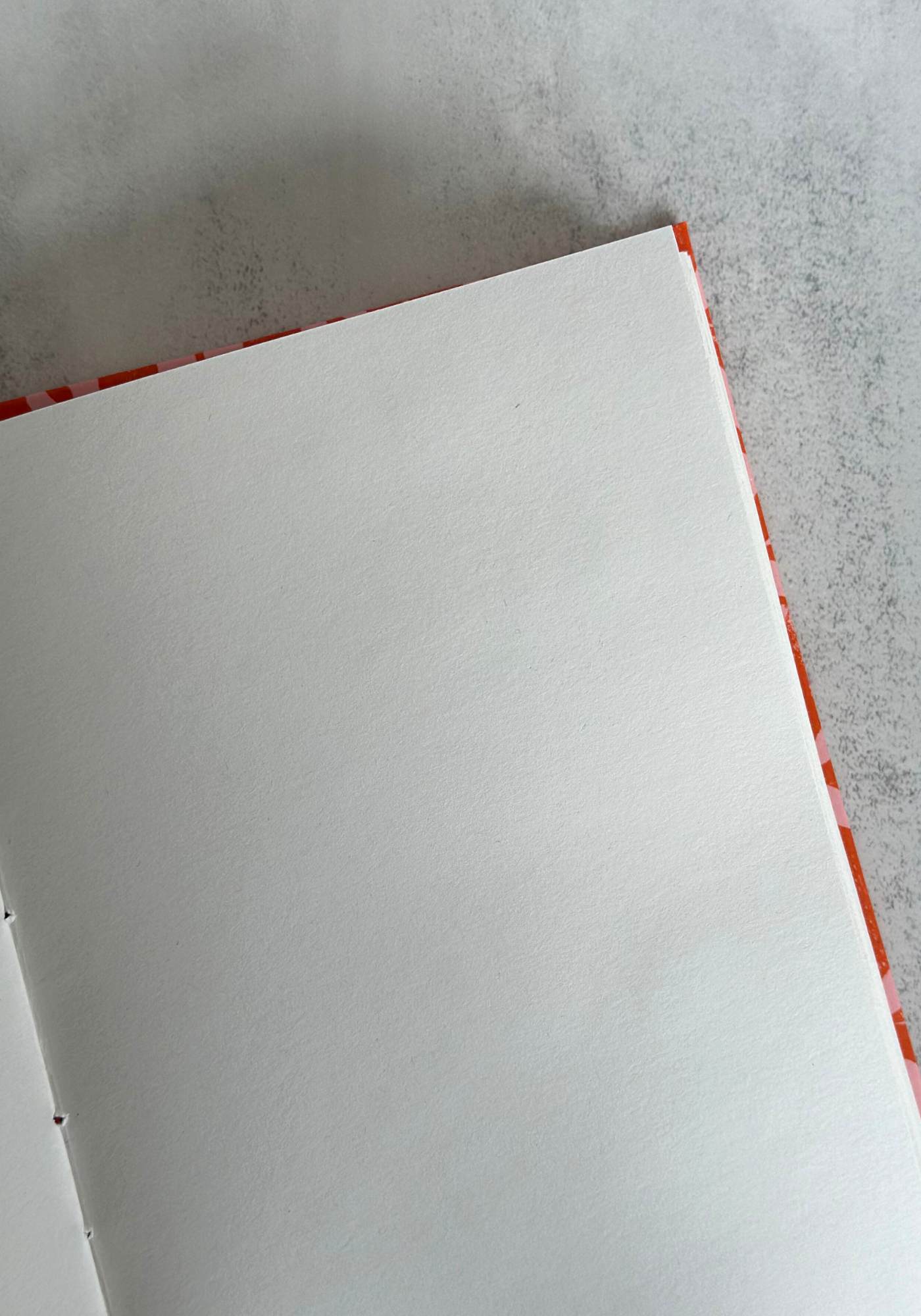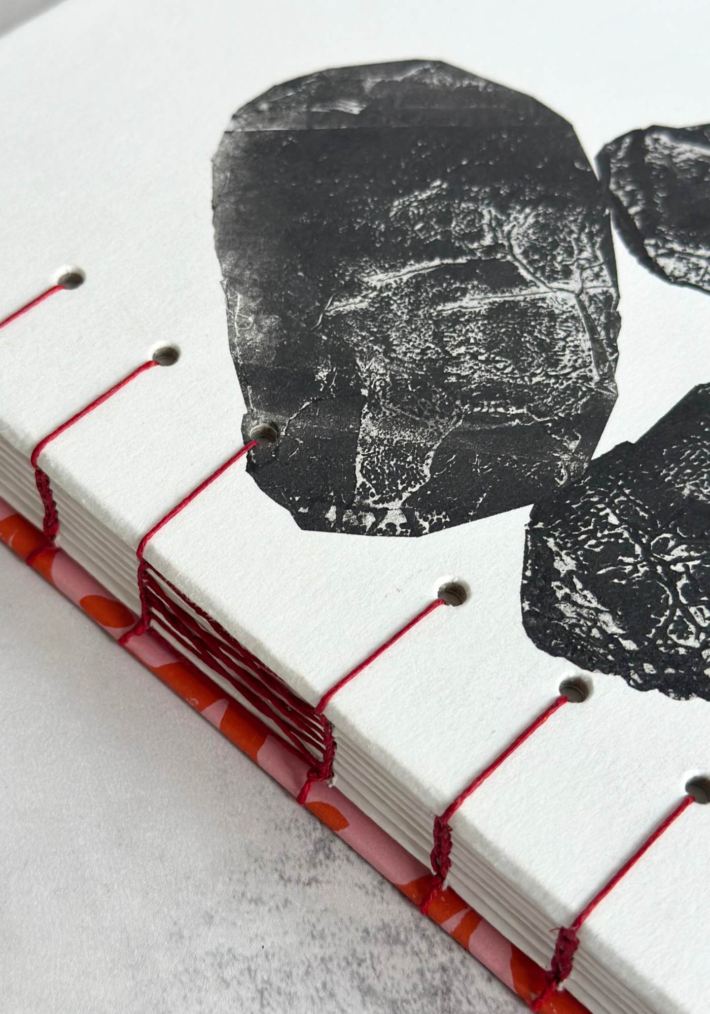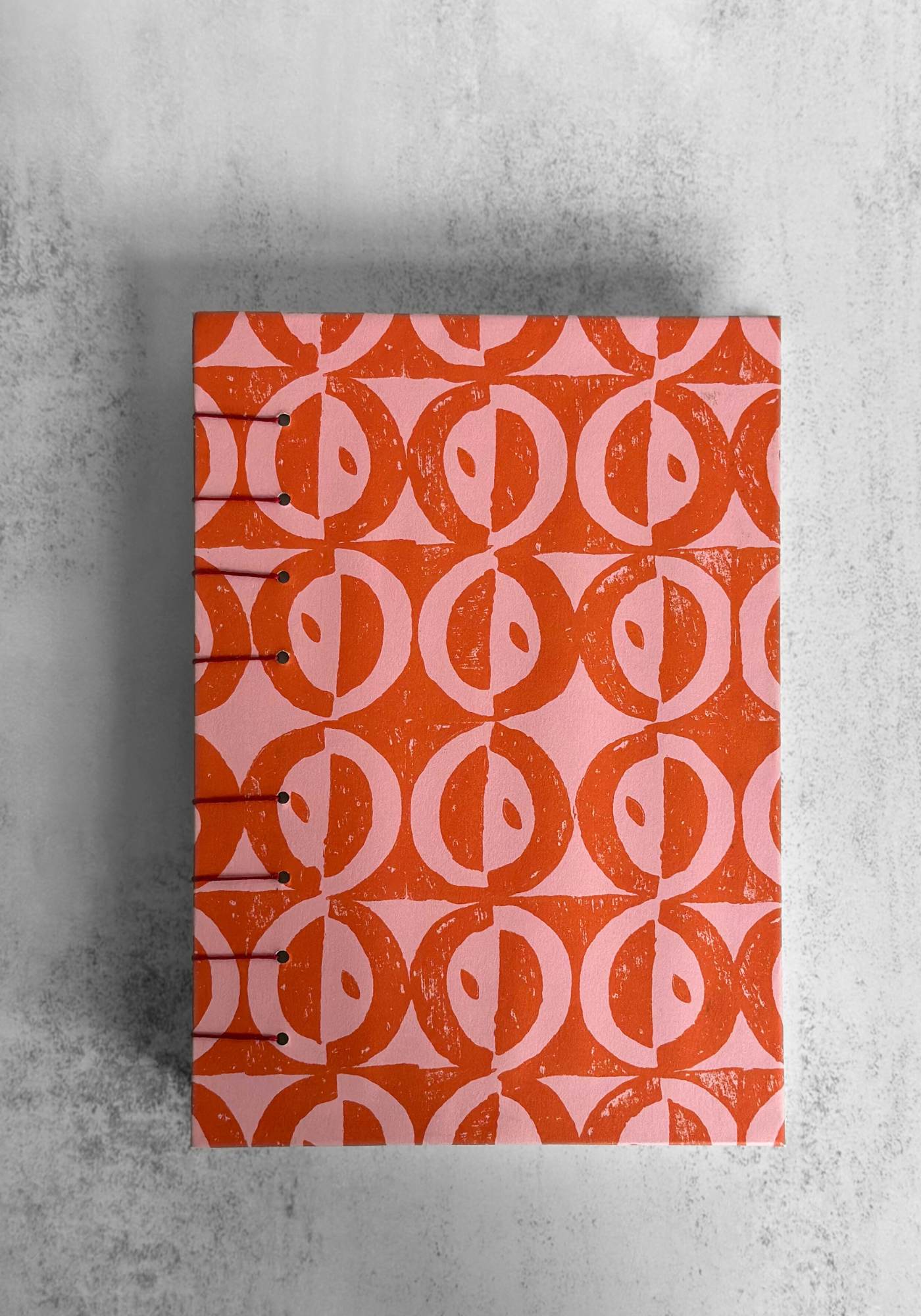 A completely unique notebook beautifully crafted from handmade paper and a lino printed cover by local artist Joanna Beckley and methodically bound by hand using a stitching technique. This retro journal is ideal for noting down your artistic progress or serve as the manifestation stationery for your daily writing. You won't find another like this as it's a complete one off and therefore a truly special gift.