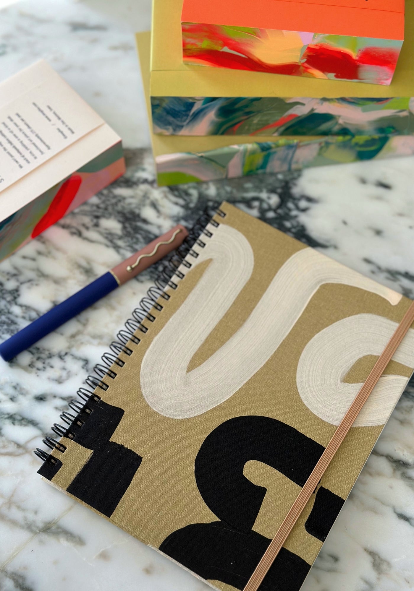 Handbemaltes Notizbuch im A5-Format in Schwarz und Hellbraun