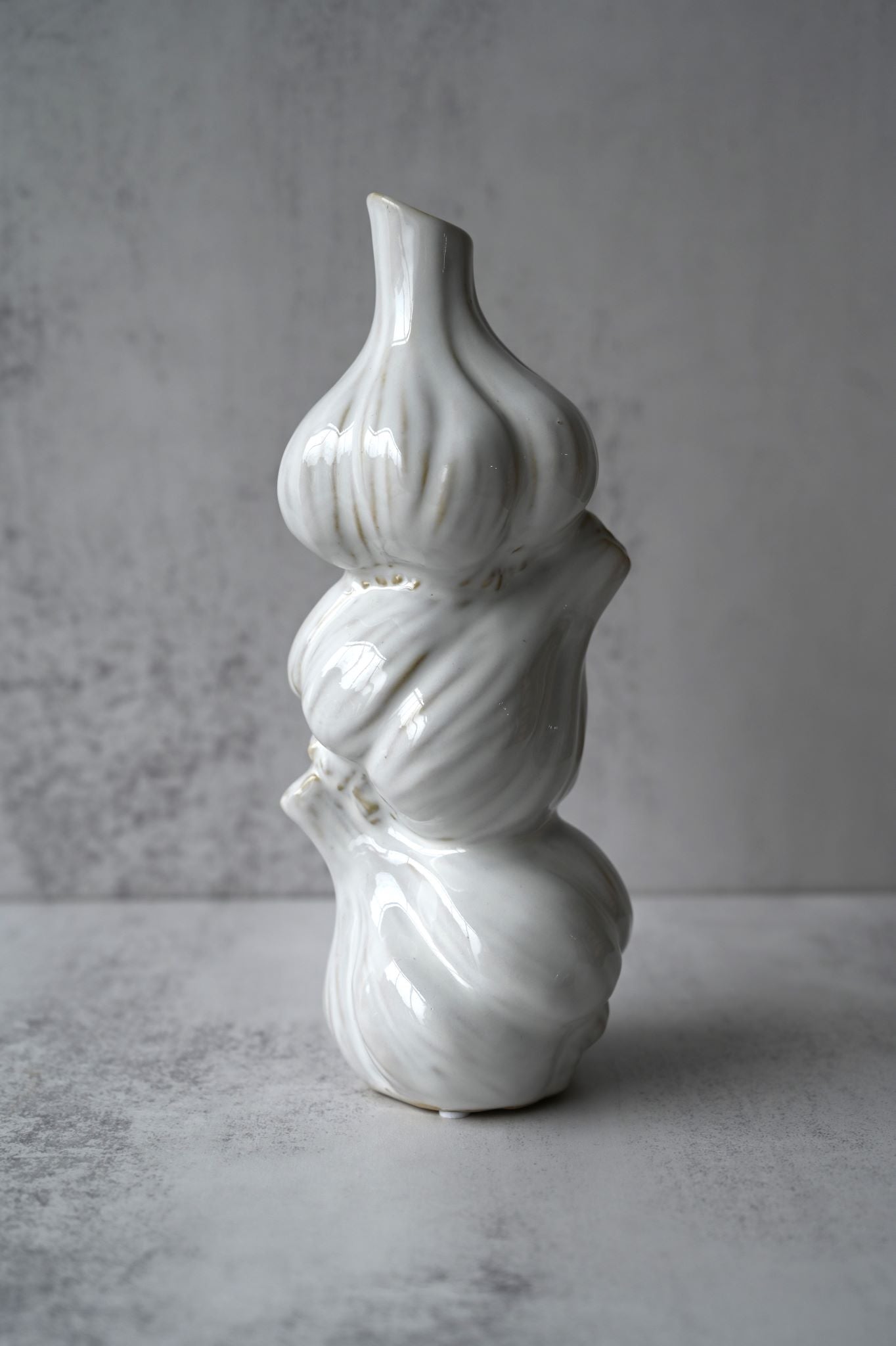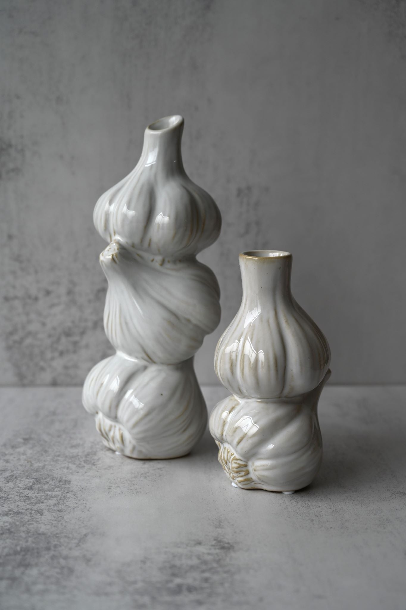 Wir mögen hier das Seltsame und Wunderbare und diese Keramikvase mit Stiel fängt das perfekt ein. Für ein exzentrisches Blumenarrangement vergessen Sie die Blumen und zeigen Sie Ihre im Garten angebauten Frühlingszwiebeln oder einen einzelnen Selleriestängel, sodass es aussieht, als würden diese Keramikknoblauchknospen tatsächlich wachsen.
