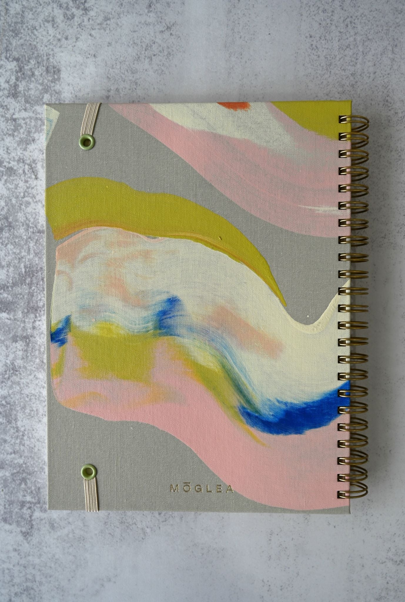 This luxury notebook is made from turned edge cloth covers painted by hand in Mediterranean-inspired swathes of beachy pink and citrus greens. Each one is 120 pages of ridiculously thick and luxurious 103gsm paper bound in a a durable cloth cover with a contrasting elasticated band and clear pockets inside for storing notes. These marbled look journals aren't your average notebook - they're beautifully made works of art designed to inspire you to create your best work.