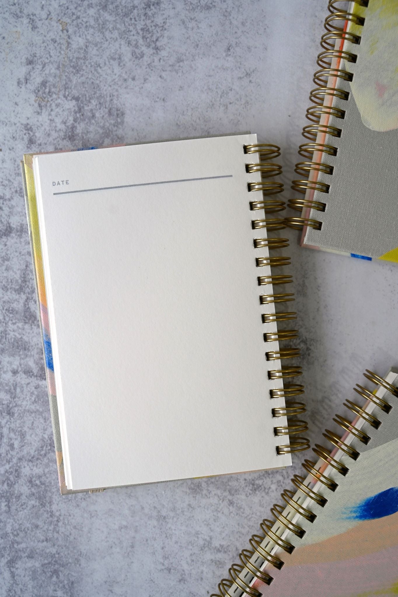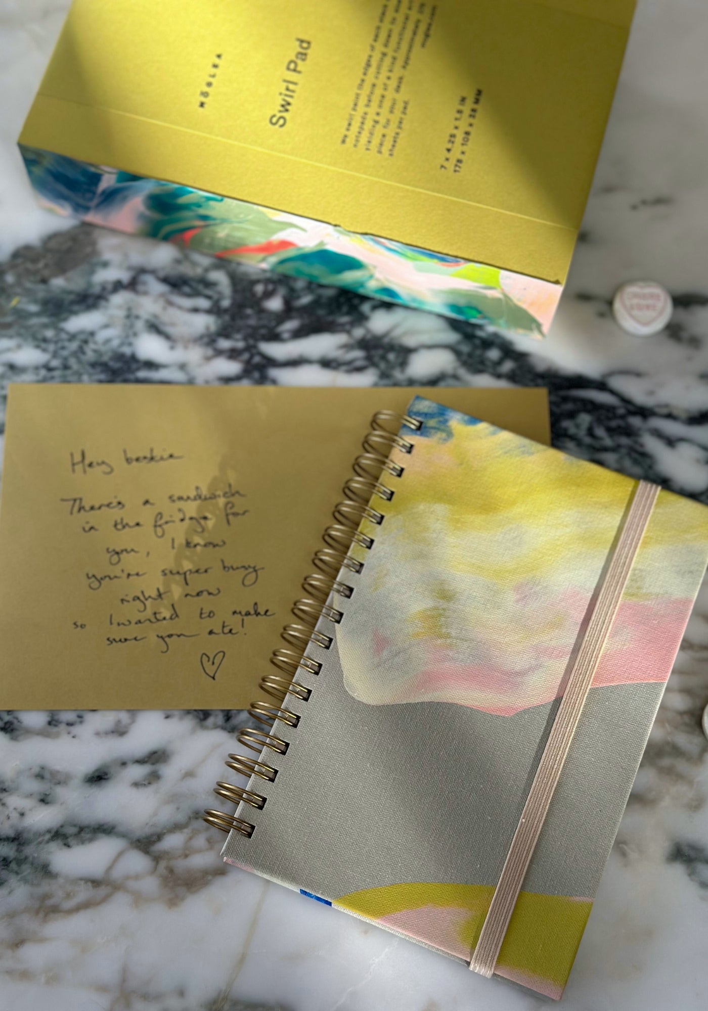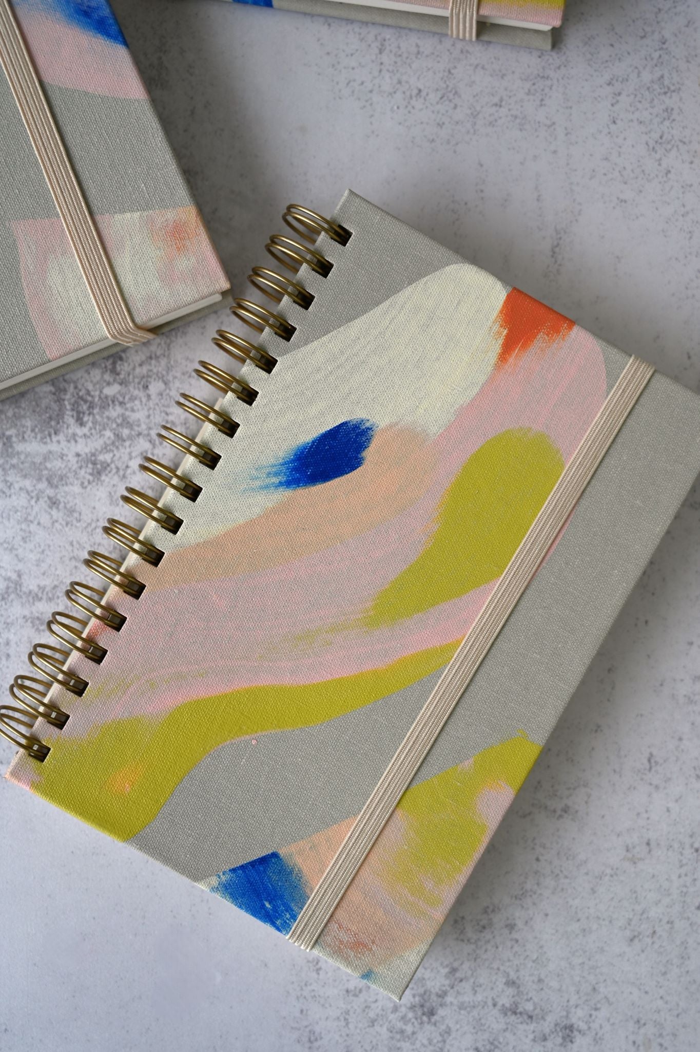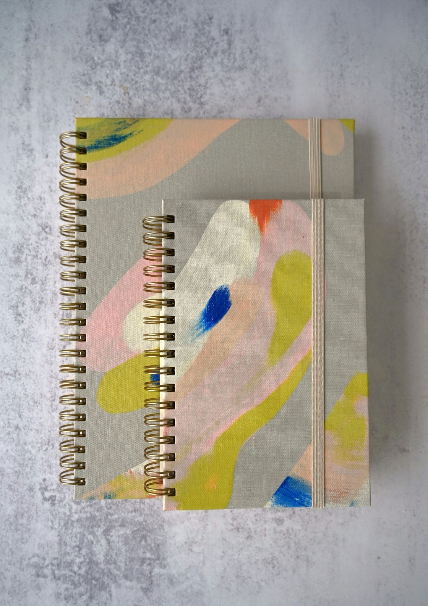 This luxury notebook is made from turned edge cloth covers painted by hand in Mediterranean-inspired swathes of citrus yellow and beachy pinks. Each one is 120 pages of ridiculously thick and luxurious 103gsm paper bound in a a durable cloth cover with a contrasting elasticated band and clear pockets inside for storing notes. These marbled look journals aren't your average notebook - they're beautifully made works of art designed to inspire you to create your best work.