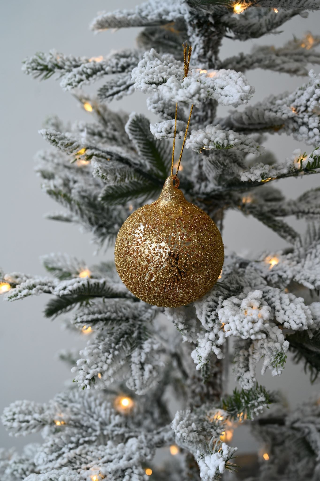 Wenn es etwas gibt, das wir an Weihnachten lieben, dann ist es definitiv ein Grund, Unmengen an Glitzer (und Champagner) zu verwenden! Schmücken Sie Ihren Baum mit diesen runden Dekorationen, die vollständig mit funkelndem Goldglitzer und winzigen Goldperlen bedeckt sind. Das ist festliche Freude in einer Kugel! Perfekt für ein goldfarbenes Weihnachtsfest.