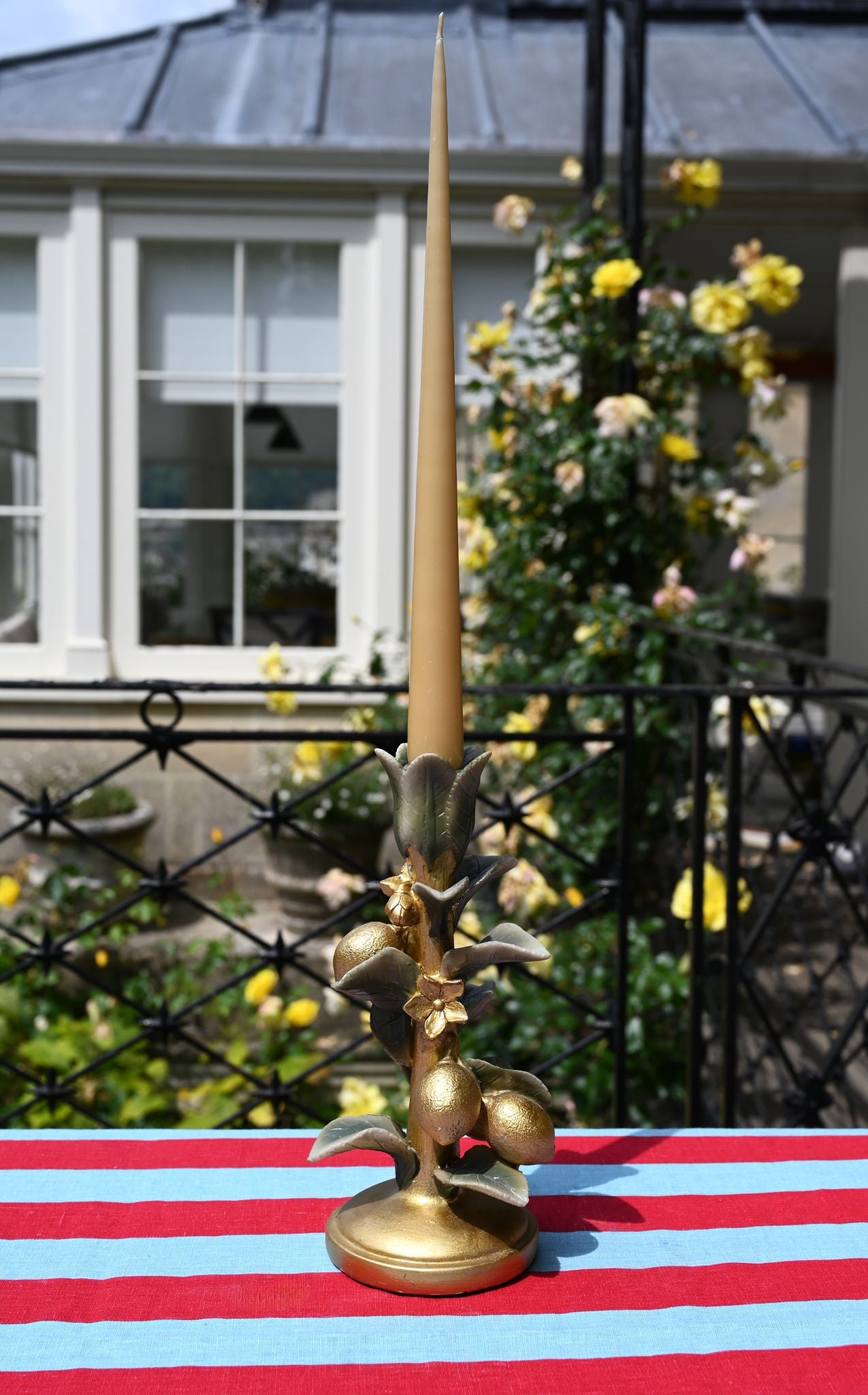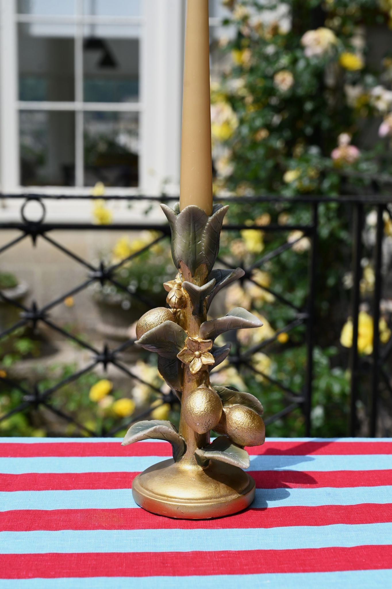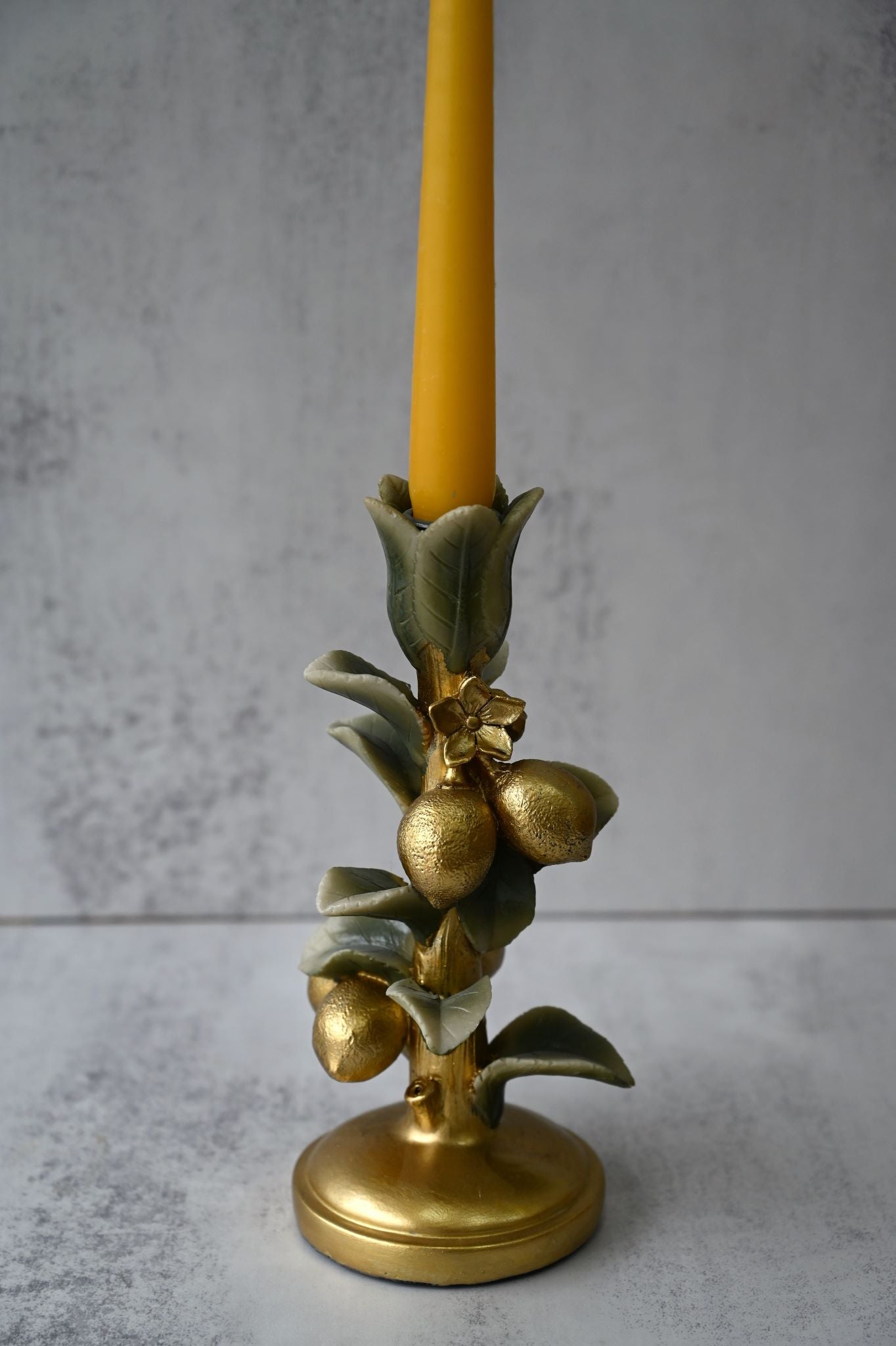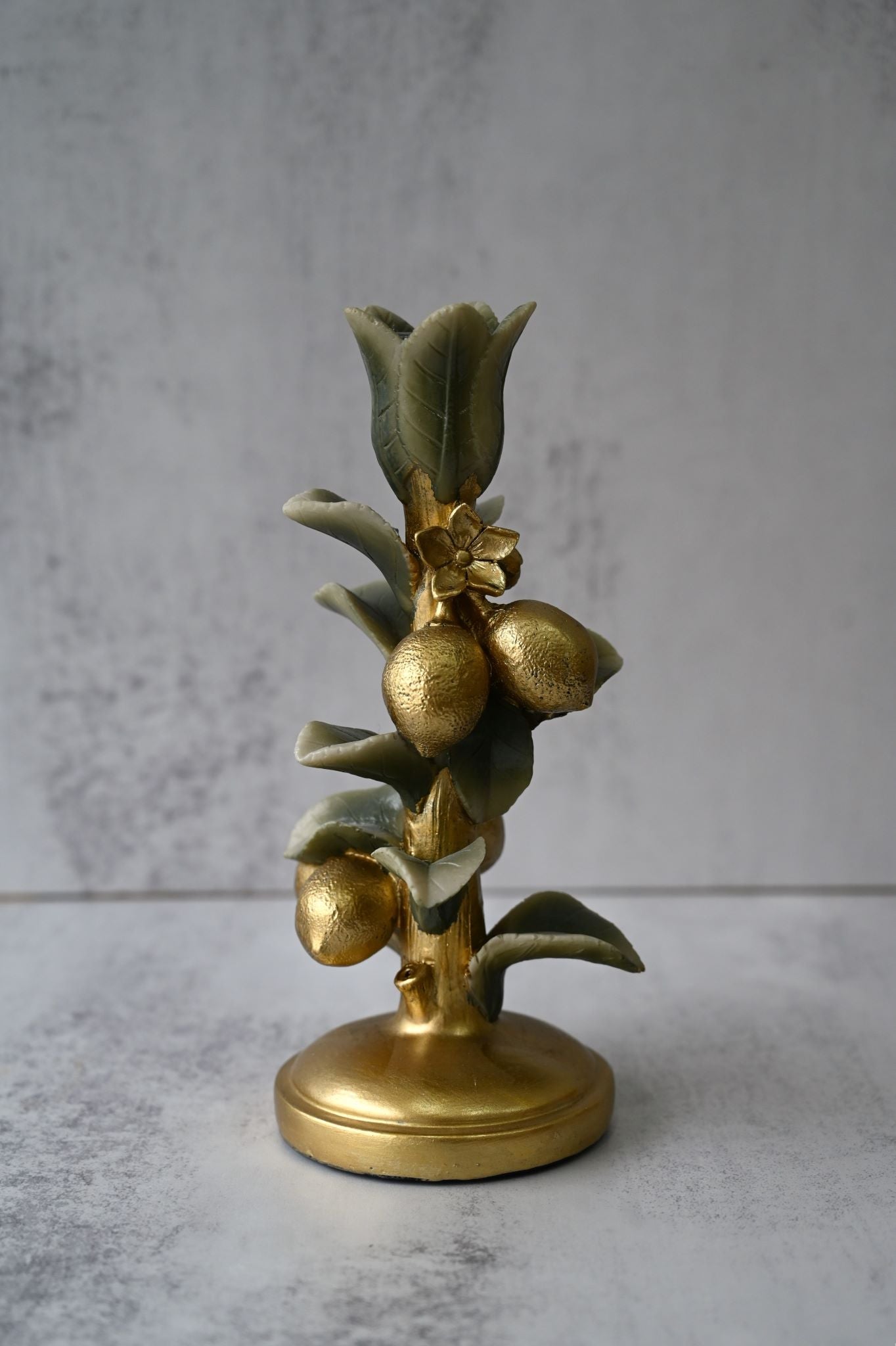Get that opulent Mediterranean look in your home with these golden candlesticks crafted from resin to look like a branch of Persian limes complete with curling leaves, flower blossoms and dimpled limes so realistic you'll feel like you could pick them and mix up a daiquiri or two.