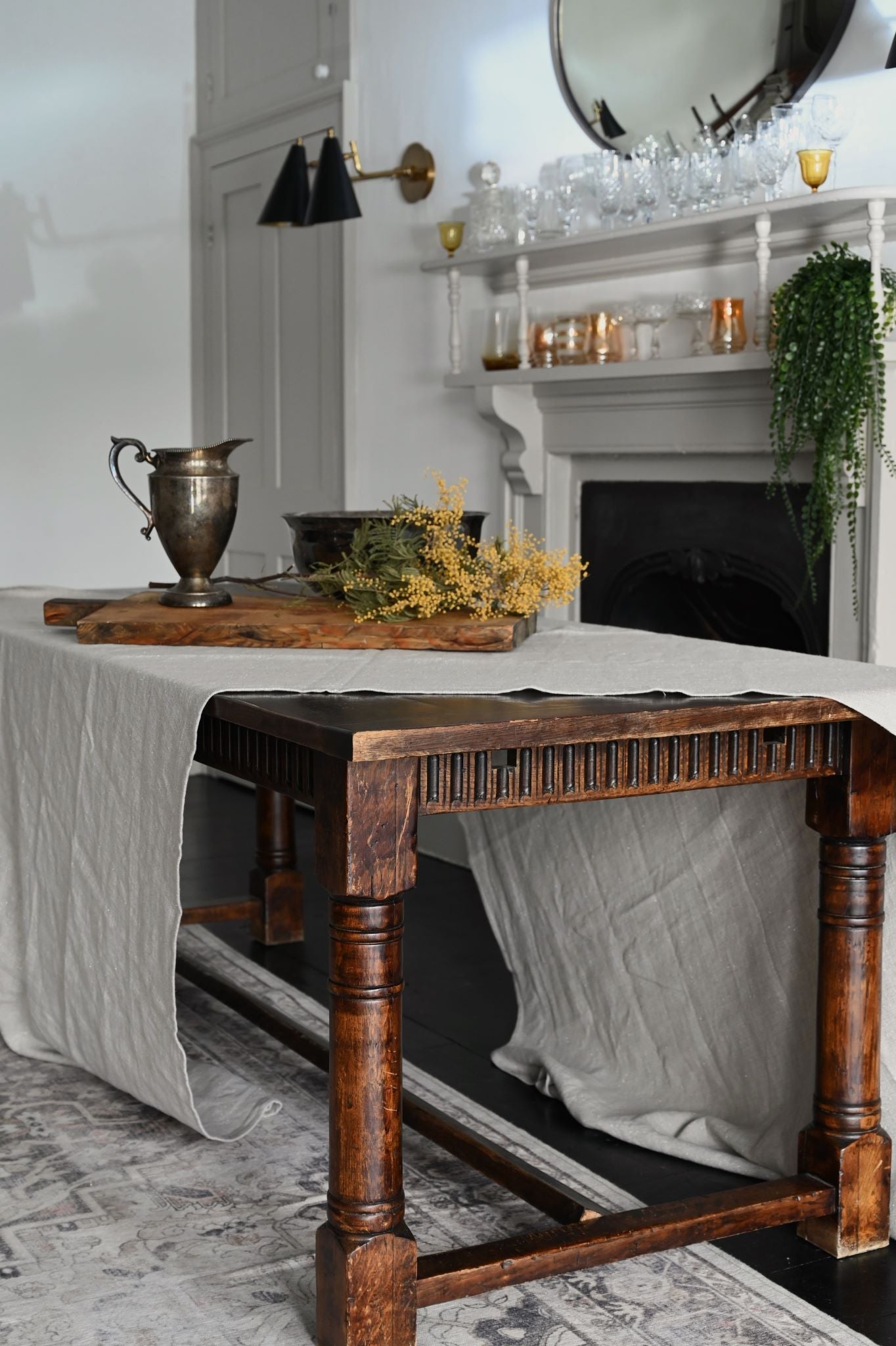 Möchten Sie Ihre neutrale Inneneinrichtung mit der natürlichen Ästhetik Ihres Weihnachtsessens abstimmen oder organisieren Sie eine Dinnerparty und brauchen einen Hintergrund, der Ihre Dekorationen hervorstechen lässt? Legen Sie diese Tischdecke aus natürlichem Leinen mit einem dezenten Silberfaden in beliebiger Größe mit passenden Servietten aus, um die Blasen in Ihrem Bollinger zur Geltung zu bringen.