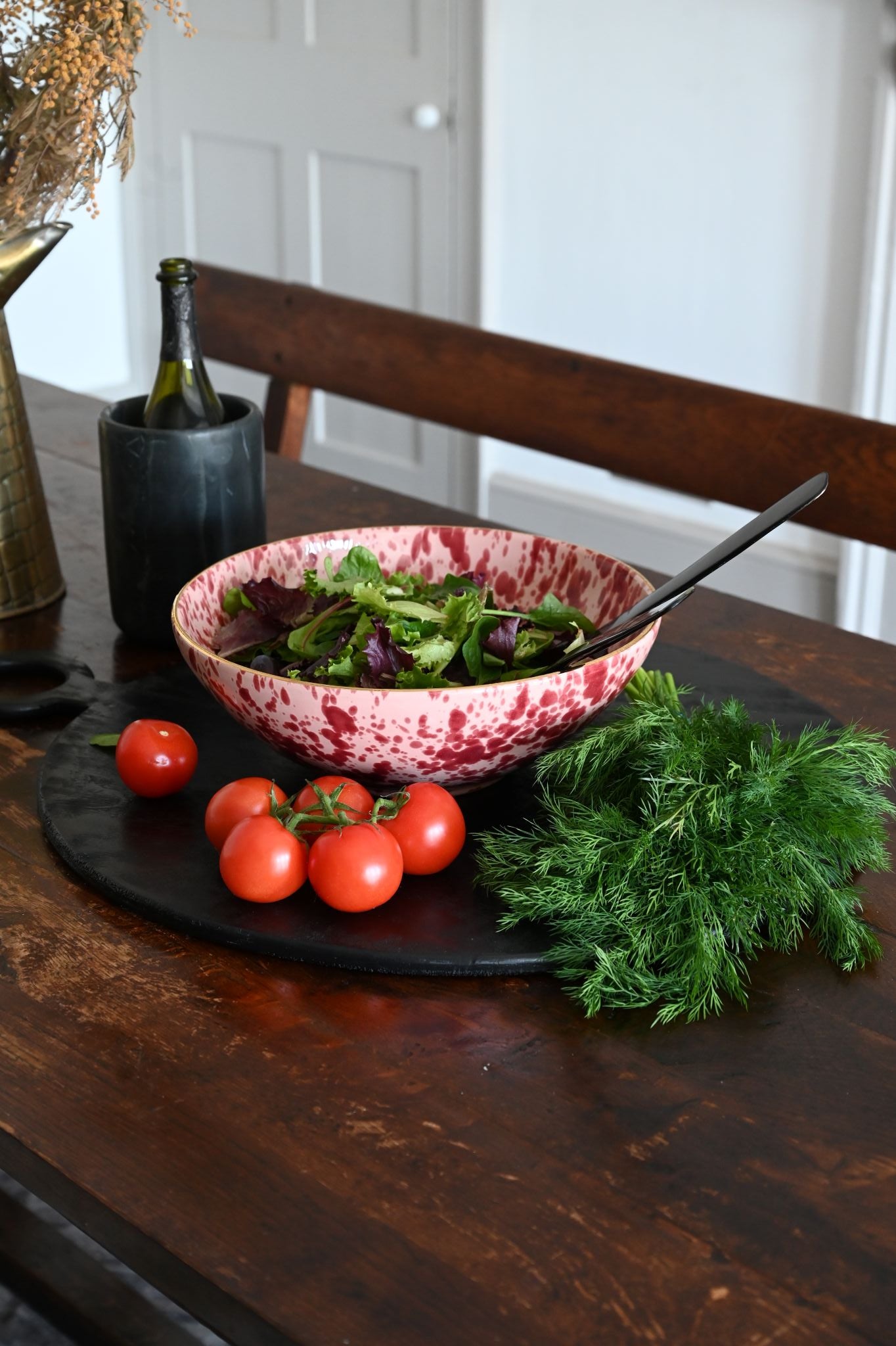 Treat your guests to a delicious eton mess or plenty of fresh strawberries and cream at your next alfresco dinner party within this large serving bowl that has been painted by hand with artistic splashes of berry pink on a light pink bowl, and finished with a brush of gold on the rim. It's dishwasher safe so you it's easy to clean when the party is over.