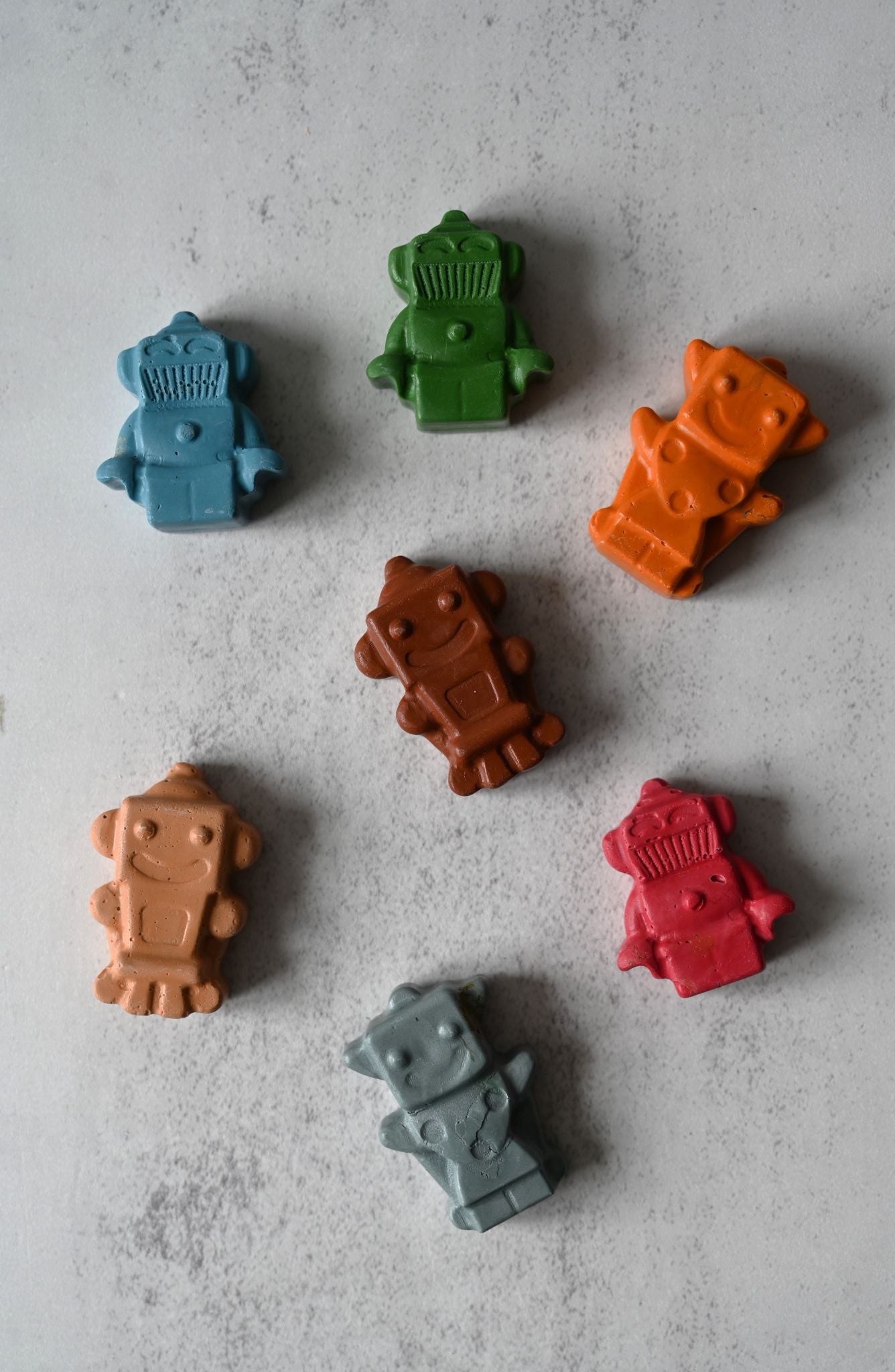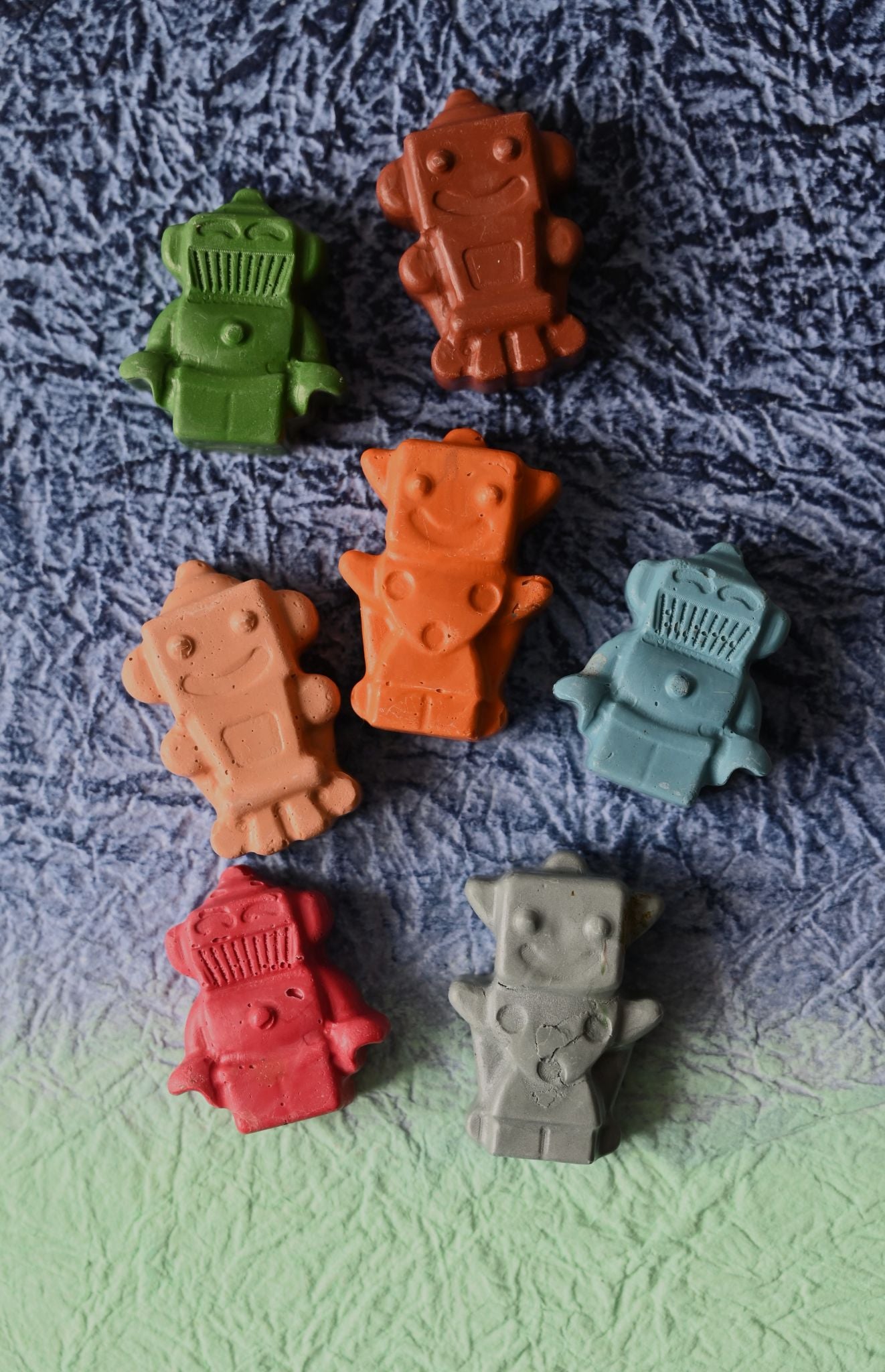 Skizzieren und kritzeln Sie sich in eine farbenfrohe Science-Fiction-Welt der puren Fantasie mit diesem Set aus sieben bunten Buntstiften in Roboterform von The North East Scribbler. Jedes Set wird in einer schicken, marineblauen Schachtel geliefert und ist somit ein fertiges Geschenk für einen kreativen Freund oder ein neugieriges Kind.