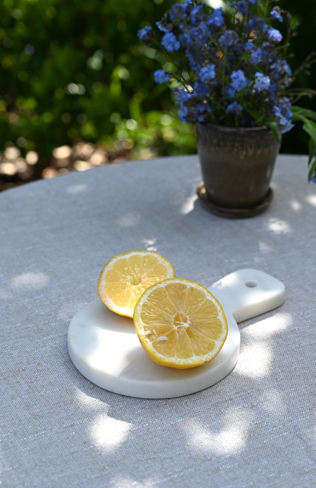 Rundes Servierbrett aus weißem Marmor