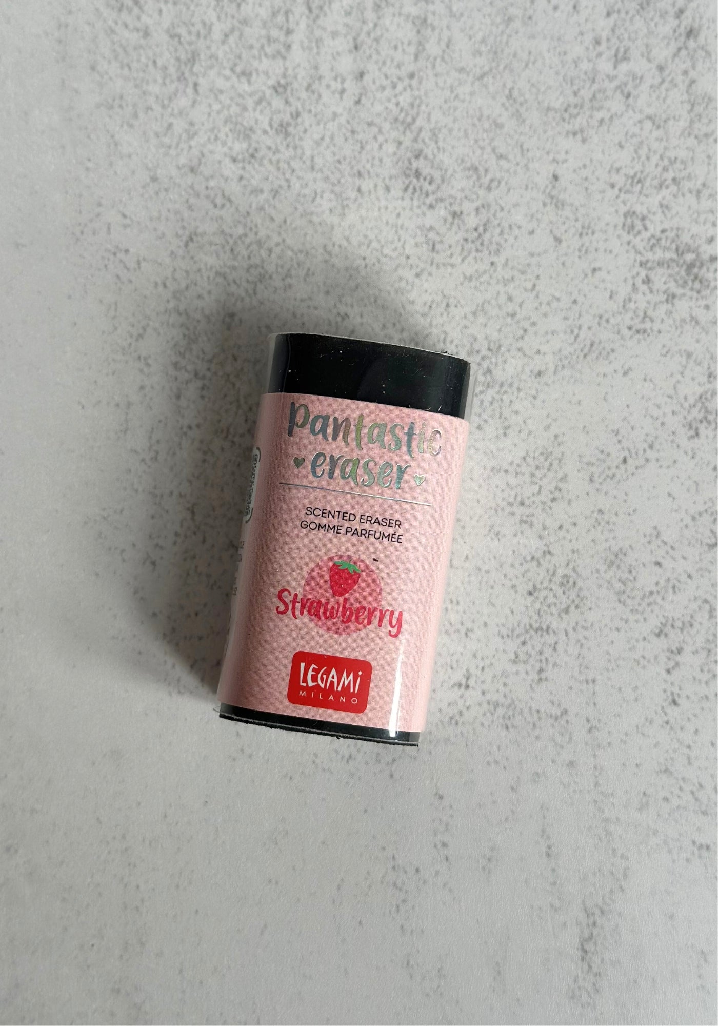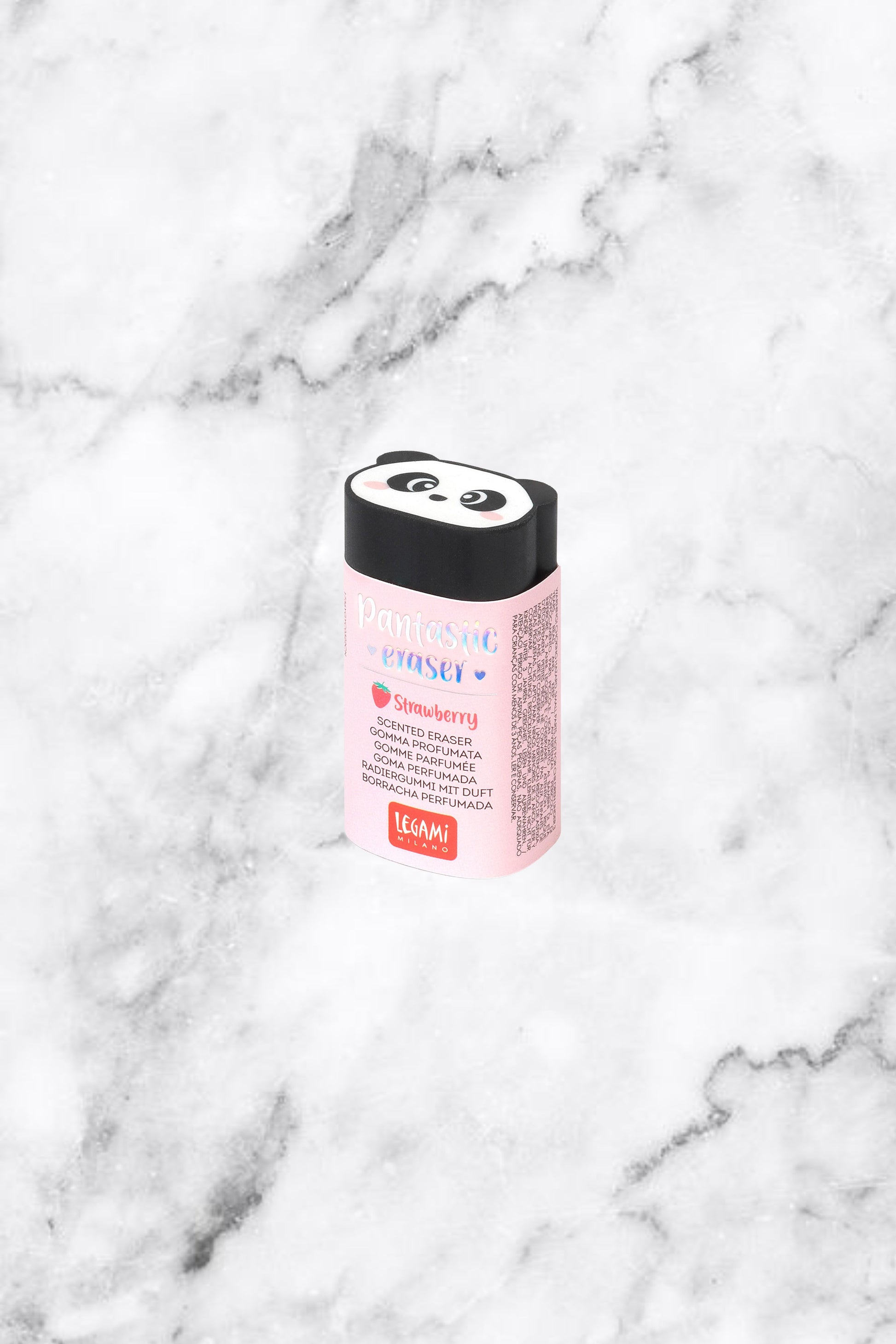 Stecken Sie diesen fruchtig duftenden Radiergummi in Ihr Federmäppchen für die Schule. Er duftet nach Erdbeere und hat die Form eines süßen Pandas.