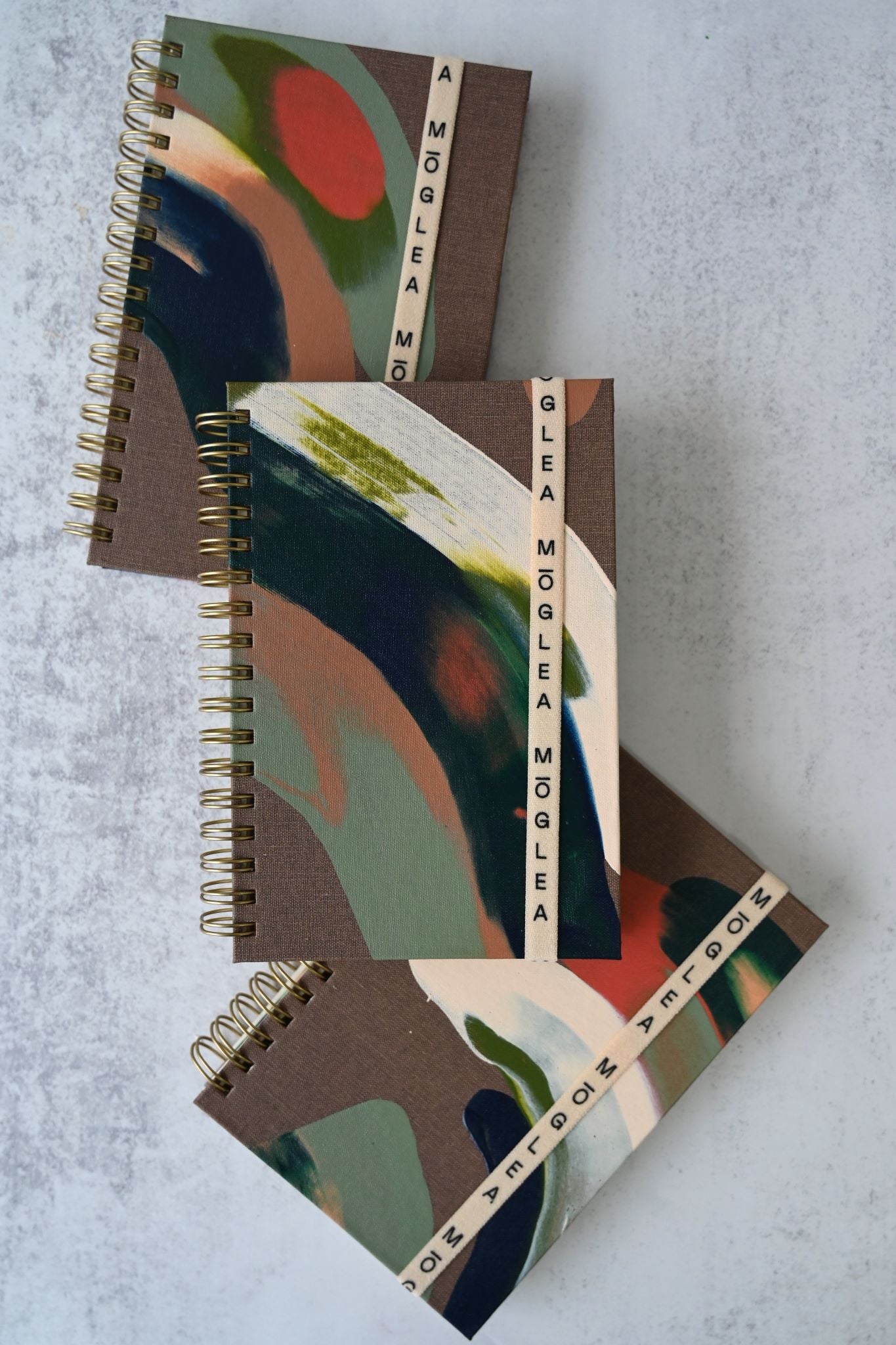 This luxury notebook is made from turned edge cloth covers painted by hand in desert hues with generous swathes of sunset orange on a deep stone backdrop. Each one is 120 pages of ridiculously thick and luxurious 103gsm paper bound in a a durable cloth cover with a contrasting elasticated band and clear pockets inside for storing notes. These marbled look journals aren't your average notebook - they're beautifully made works of art designed to inspire you to create your best work.