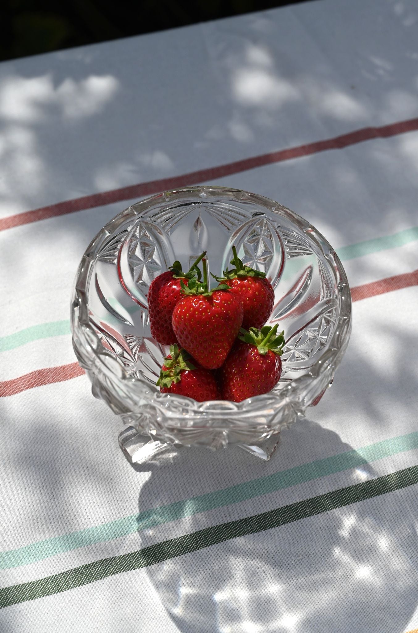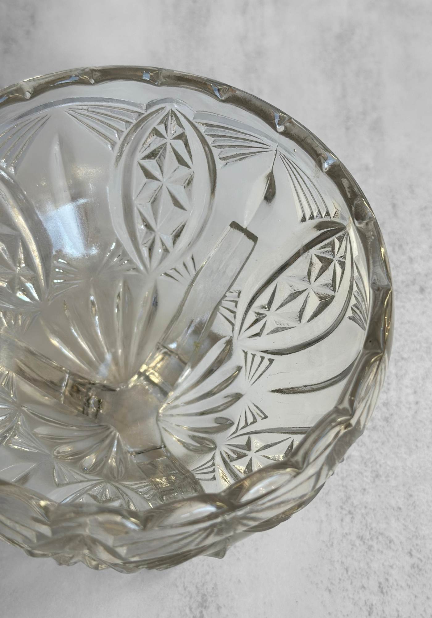 A round raised bowl made from exquisitely patterned cut glass creating an intricate Art Deco style pattern that's perfect for dipping your hand into the sweetie jar - or bowl in this case! Fill with sugared almonds for your sweet tooth or place in your decadent Deco hallway for keys and coins.