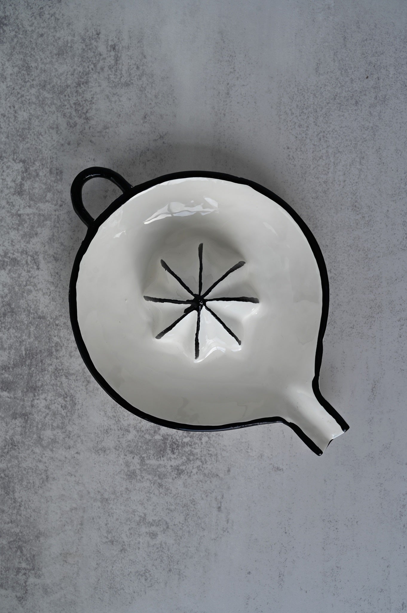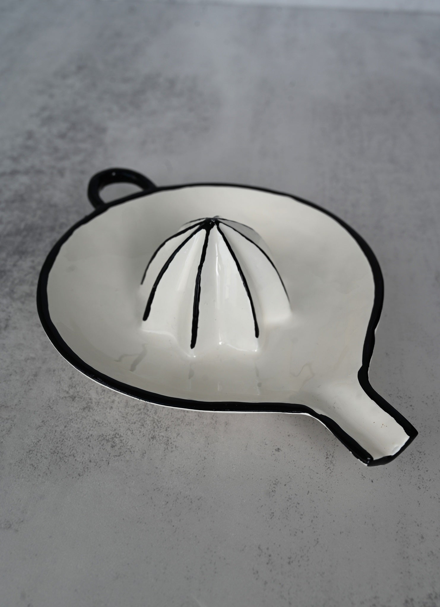Schwarz-weiße Emaille-Zitruspresse