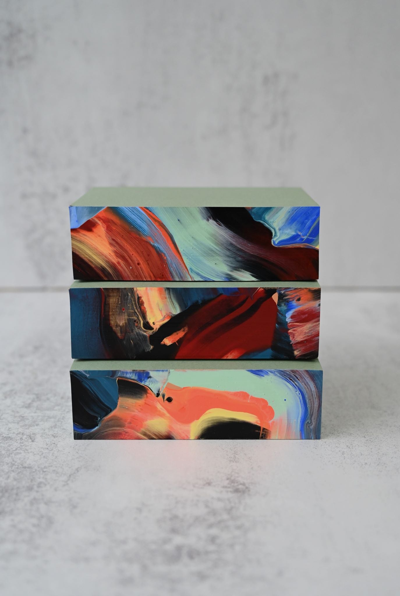 Moglea is an Iowa based design studio headed by furniture and graphic designers Chad and Meg, focusing on artful paper and home goods. Moglea stationery is created by applying layers of paint to extra thick sheets of paper before cutting it down into completely unique compositions. Each piece is then run through an antique press to be stamped, printed or die cut using traditional letterpress printing processes. What makes Moglea so incredible is that every piece in every collection will always be completely unique, like a work of art for your stationery collection.