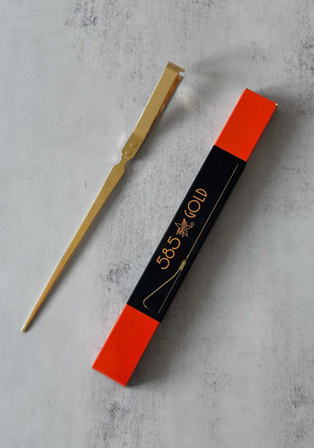 Perfekt minimalistisch und wirklich elegant: ein Brieföffner und Heftklammerentferner aus gehärtetem und vernickeltem Stahl mit 23-Karat-Gold-Veredelung.