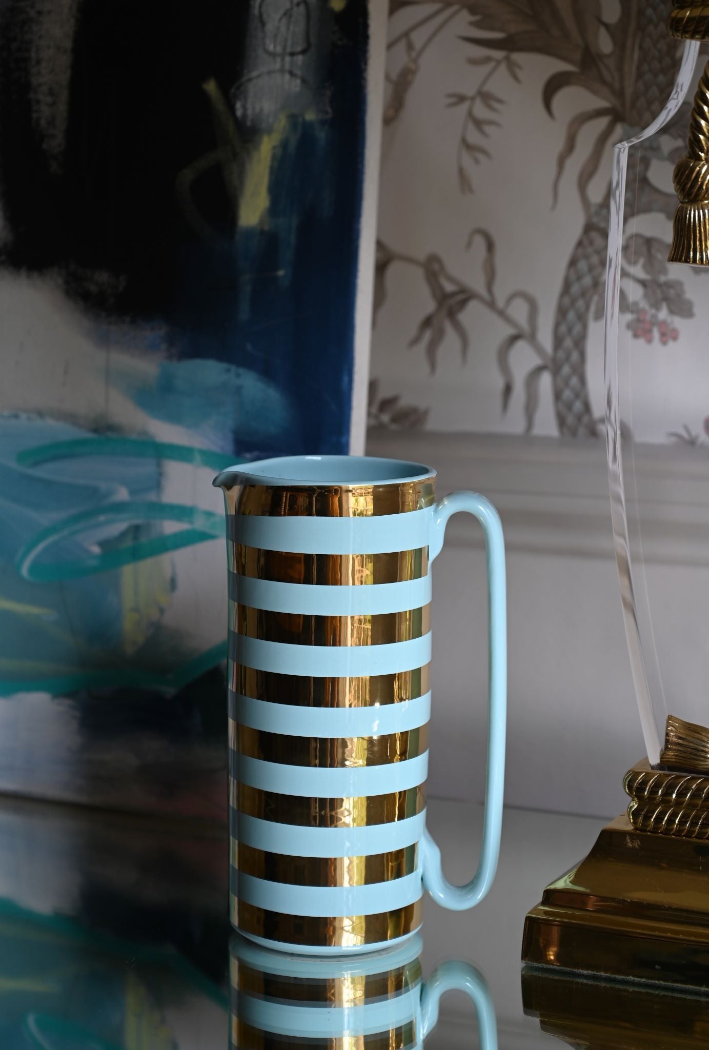Pichet en céramique à rayures bleues et or 24 carats