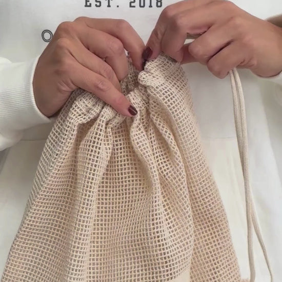 Made of 100% organic cotton. We recommend hand wash in cold water to retain the shape and weave.