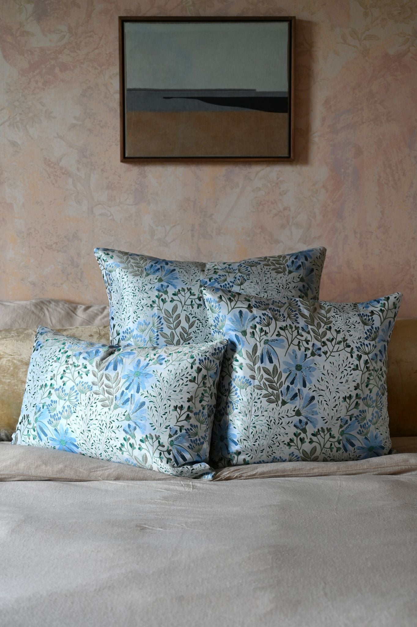 Bring a Spring meadow inside your interior with these pretty blue floral cushions made from a high quality silk alternative that's actually machine washable. We'd spot these in a Nancy Meyers style English country cottage but equally we love to see them paired with modern patterns to juxtapose the quaint meadow-style print.