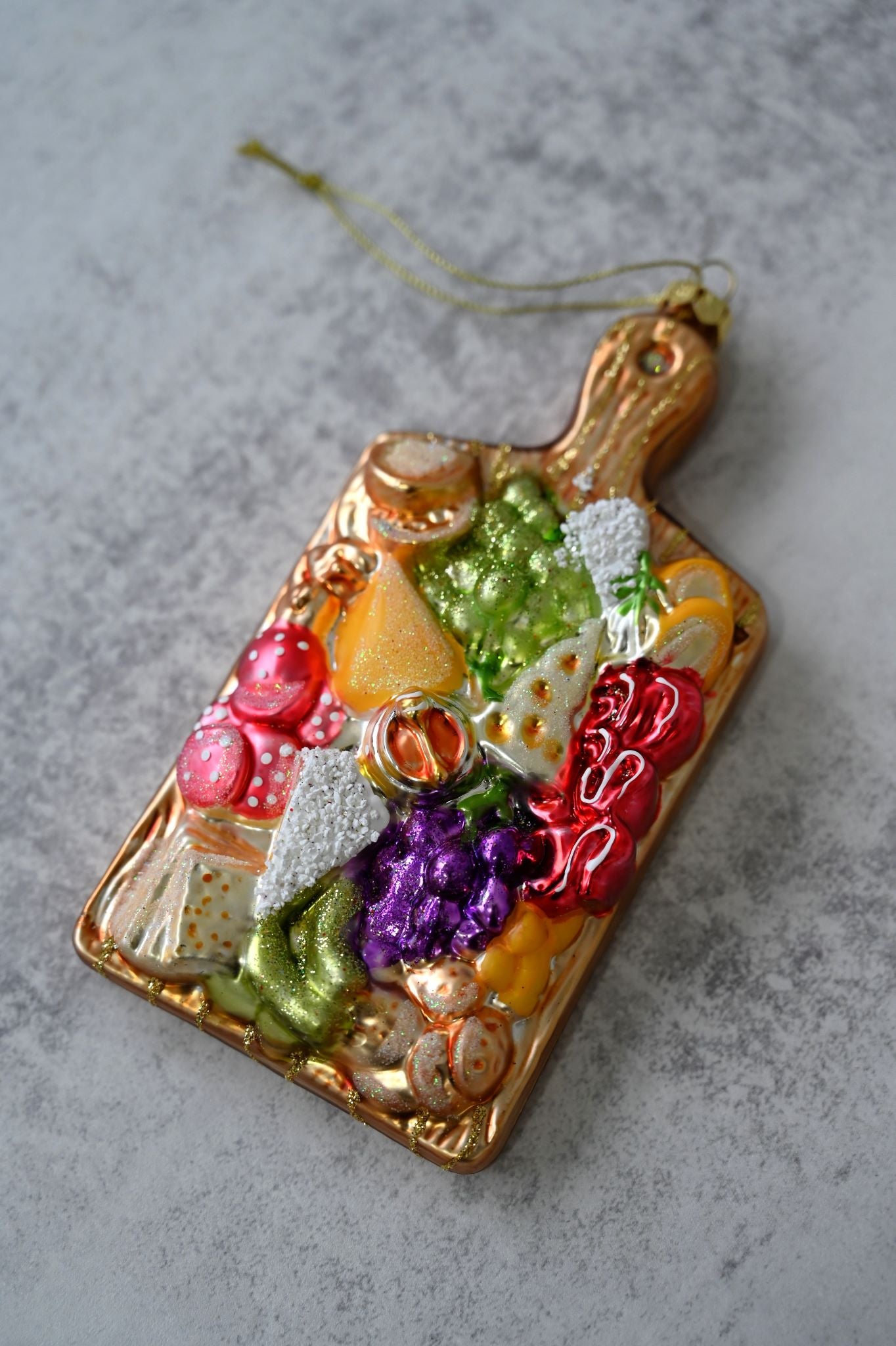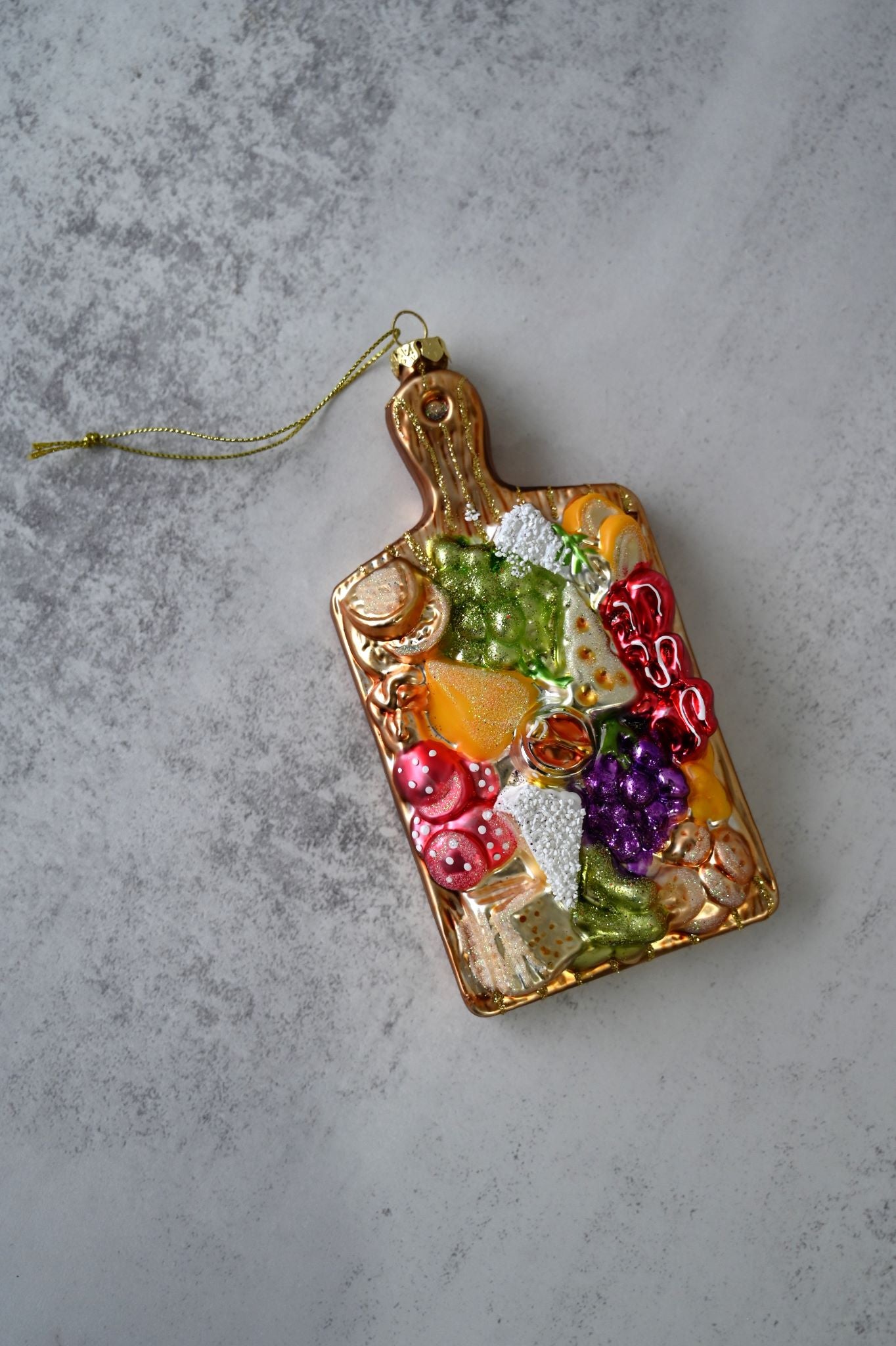 De notre nouvelle collection de fête de Noël Town+House, cette décoration festive sur le thème de la nourriture est conçue pour ressembler à un plateau miniature de fromages et de bouchées. Cette petite décoration de plateau de charcuterie est fabriquée en verre et peinte à la main pour capturer chaque petit morceau de fromage et de salami.