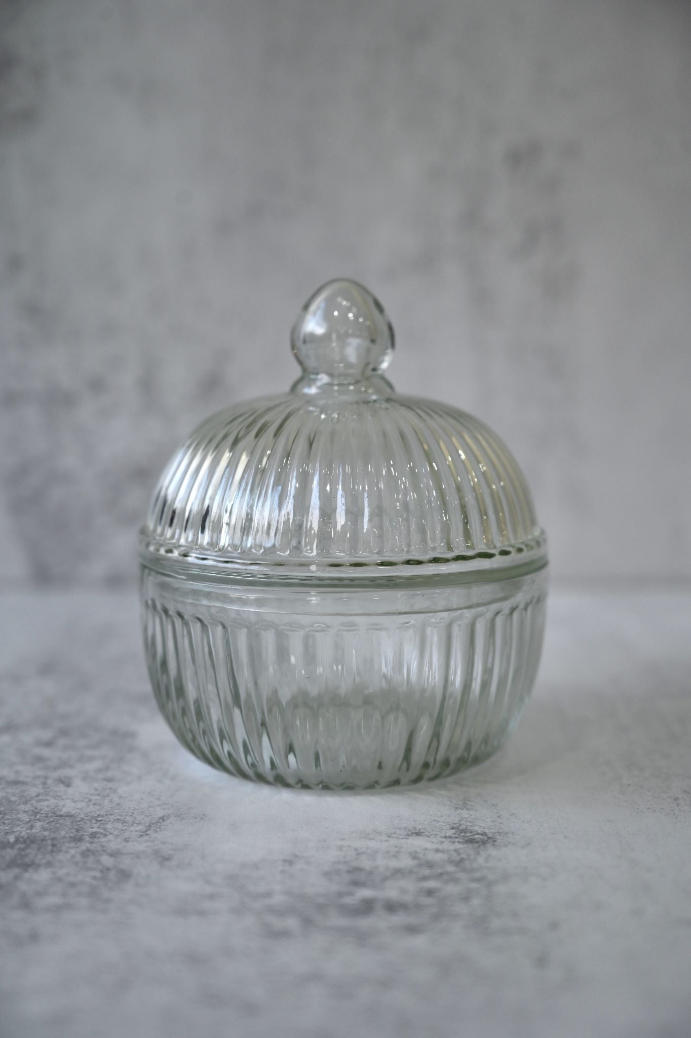 Ce pot rond en verre avec couvercle a la forme d'un bocal à bonbons vintage que vous trouveriez dans une confiserie victorienne autrefois remplie à ras bord de bonbons sucrés. Vous pouvez désormais l'utiliser pour vos essentiels de salle de bain comme des disques de coton, pour ranger vos clés et vos pièces de monnaie lorsque vous rentrez chez vous pour le travail ou le garder dans votre cuisine pour les essentiels du garde-manger comme l'ail et les herbes, grâce à sa forme ronde généreuse et à son couvercle assorti.