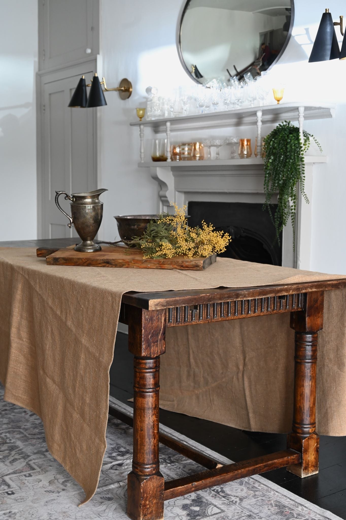 Nos collections de linge de table sont fabriquées à partir d'un mélange de lin et de coton lavé doux, rehaussé de fils métalliques qui donnent à chaque festin un éclat subtil lorsque le tissu capte la lumière du soleil ou la lueur des bougies au dîner. Ils sont même lavables en machine, donc si le champagne déborde, vous pouvez vous détendre en sachant qu'à la fin de la soirée, vous pouvez tout mettre dans la machine à laver et que votre dîner ne sera pas gâché.