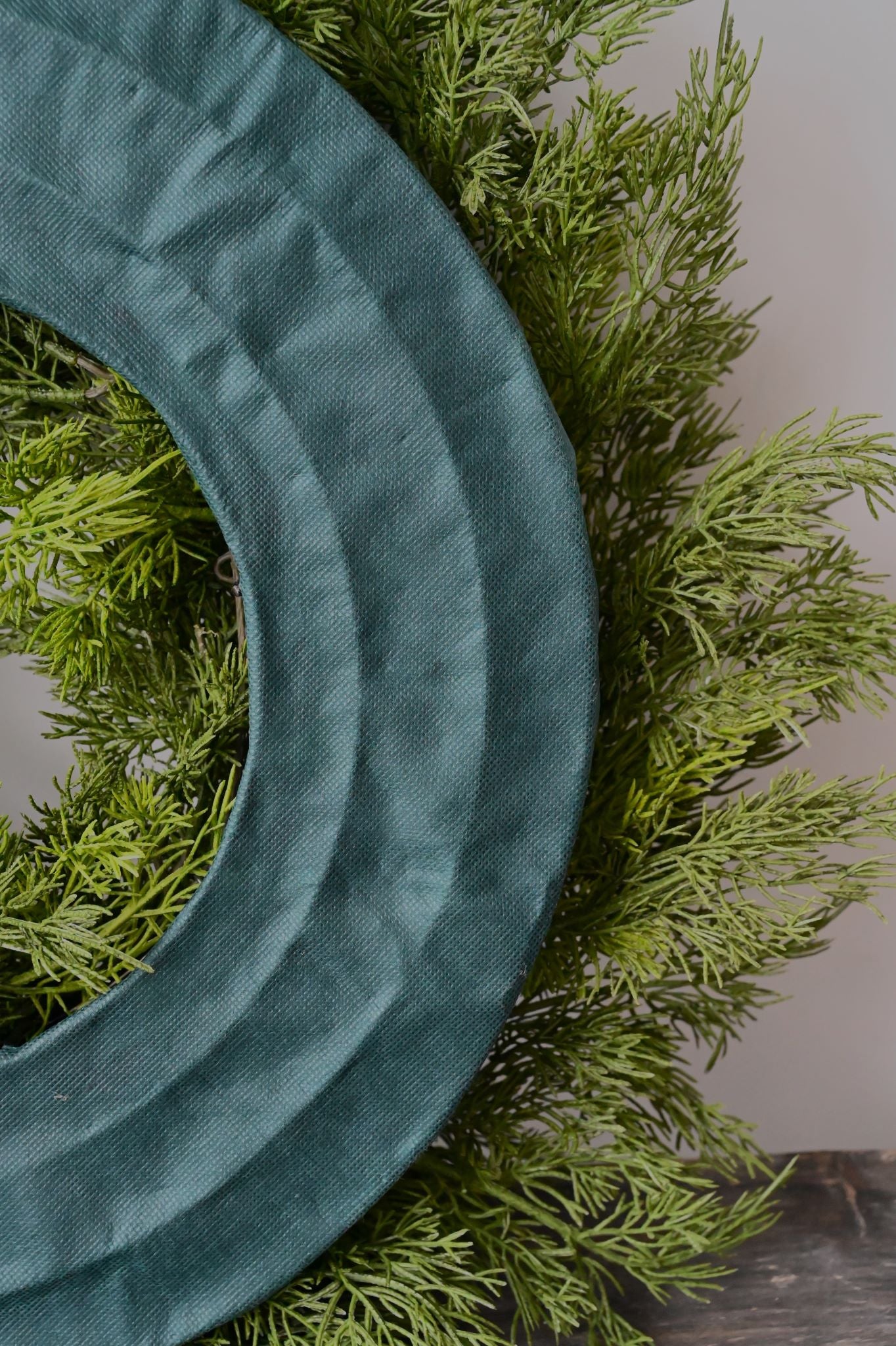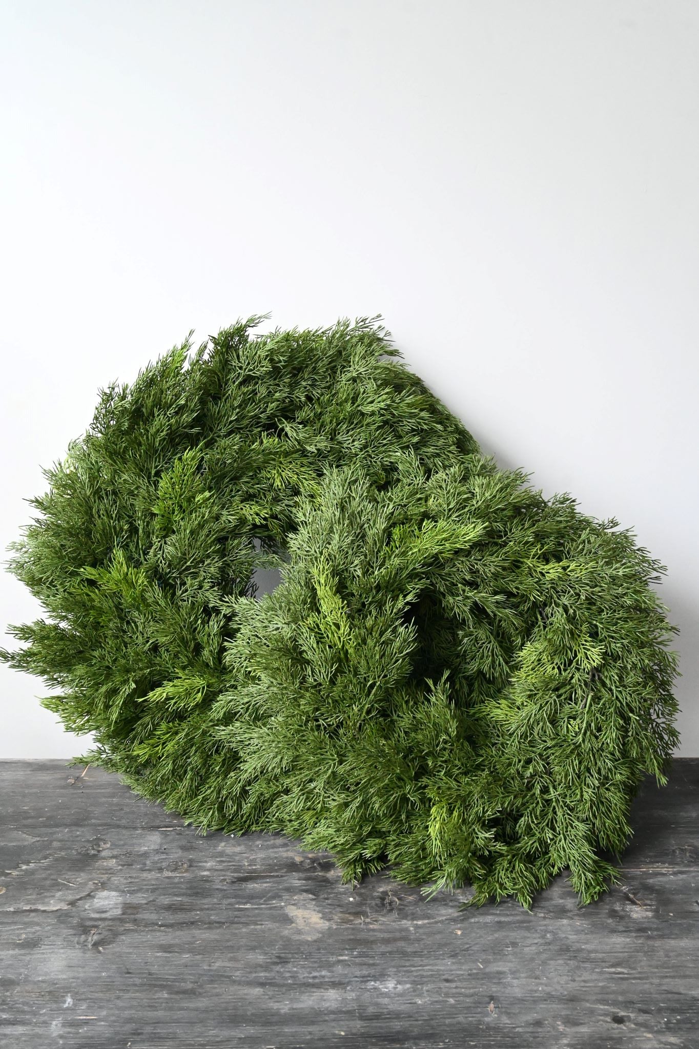 Une couronne à feuilles persistantes durable qui imite de manière réaliste le feuillage vert vif et moelleux d'un cyprès, comme si vous l'aviez vous-même récolté dans les montagnes.