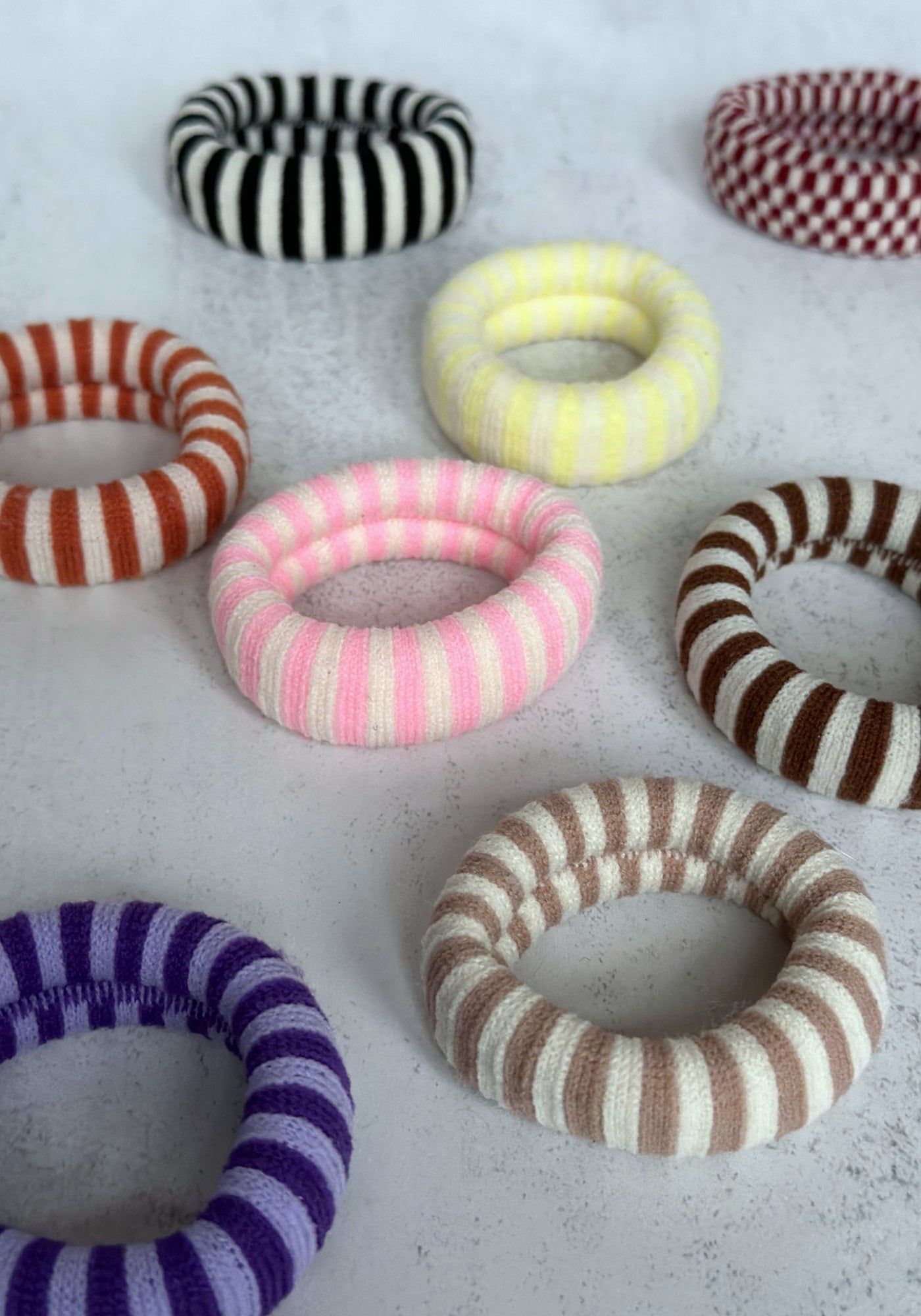 Who wants a boring hair elastic when you can have these wonderfully jazzy striped hairbands in your collection, made from polyester and tightly woven so they don't lose their structure. Mix and match with different colours depending on your outfit for the day!