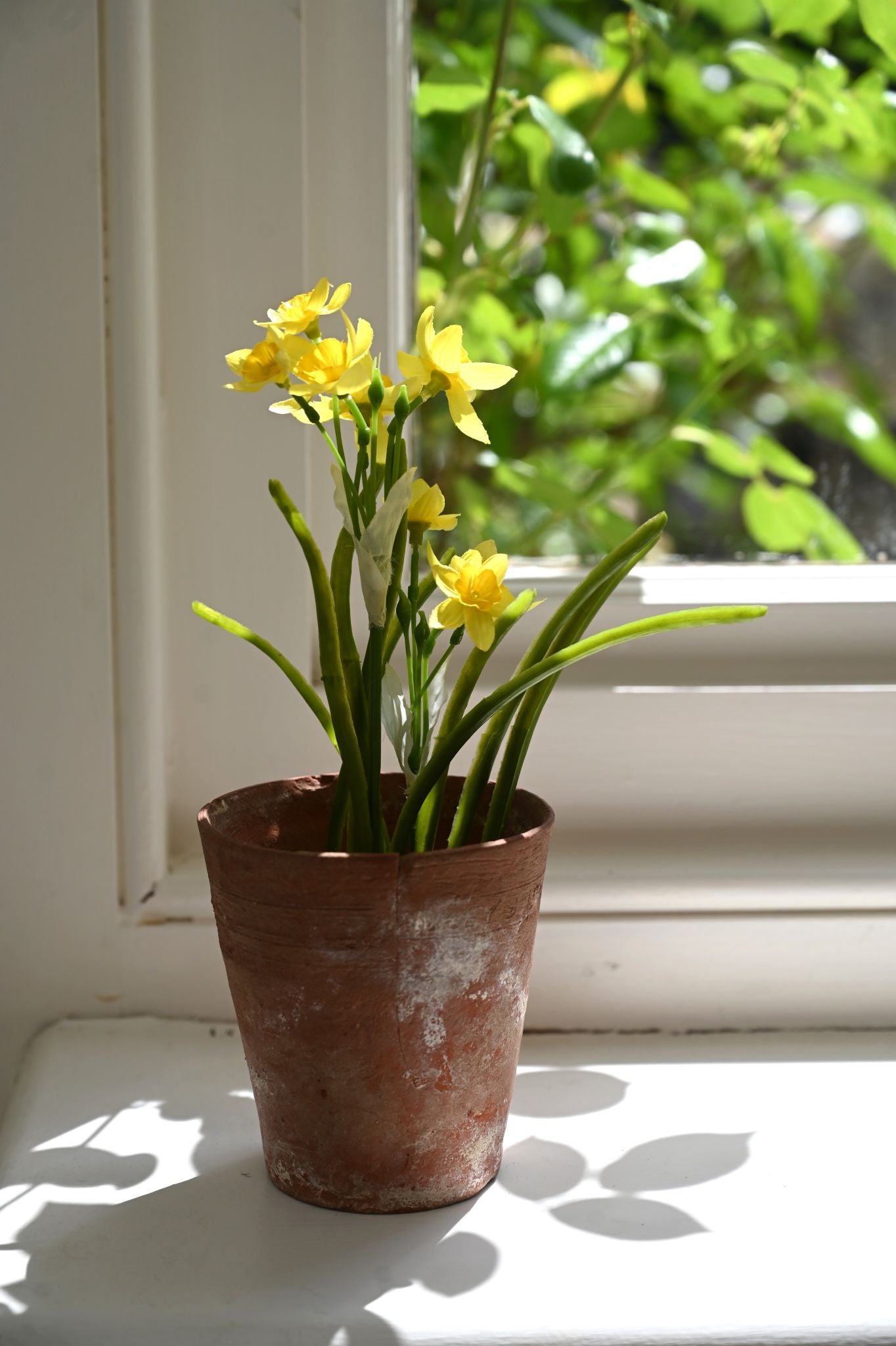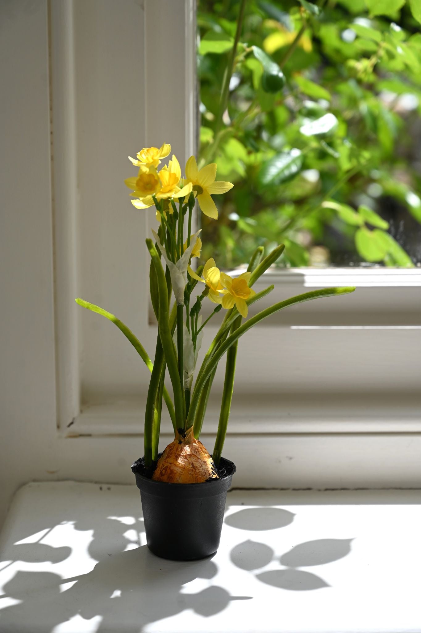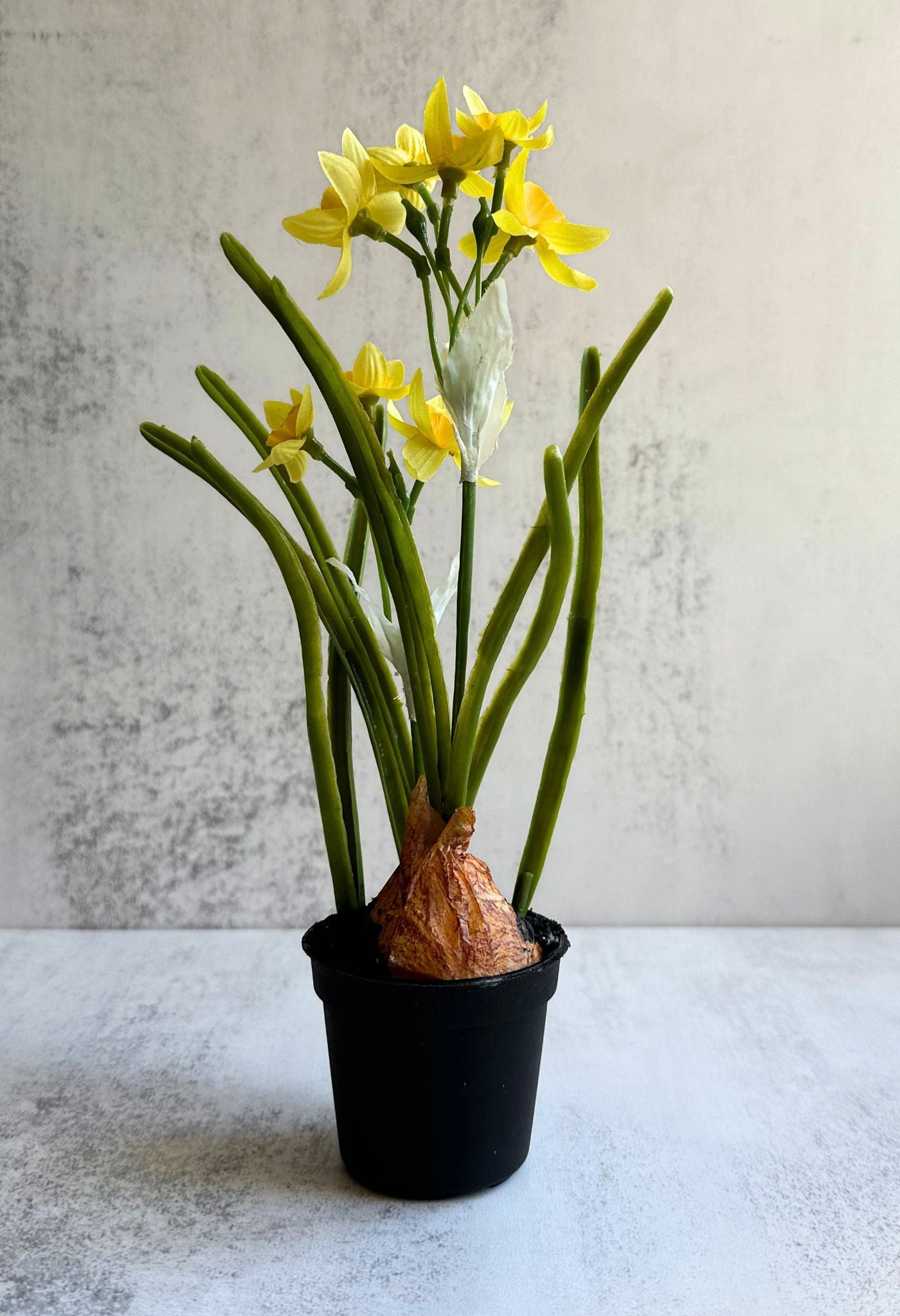 Faites entrer le printemps à l'intérieur avec cette adorable et délicate plante artificielle de narcisse. Ces fleurs artificielles semblent simples et réalistes avec une tige remplie de petites fleurs de jonquilles jaunes, dans un faux pot de pépinière pour que vous puissiez le placer dans votre pot de fleurs préféré et il égayera instantanément la pièce.