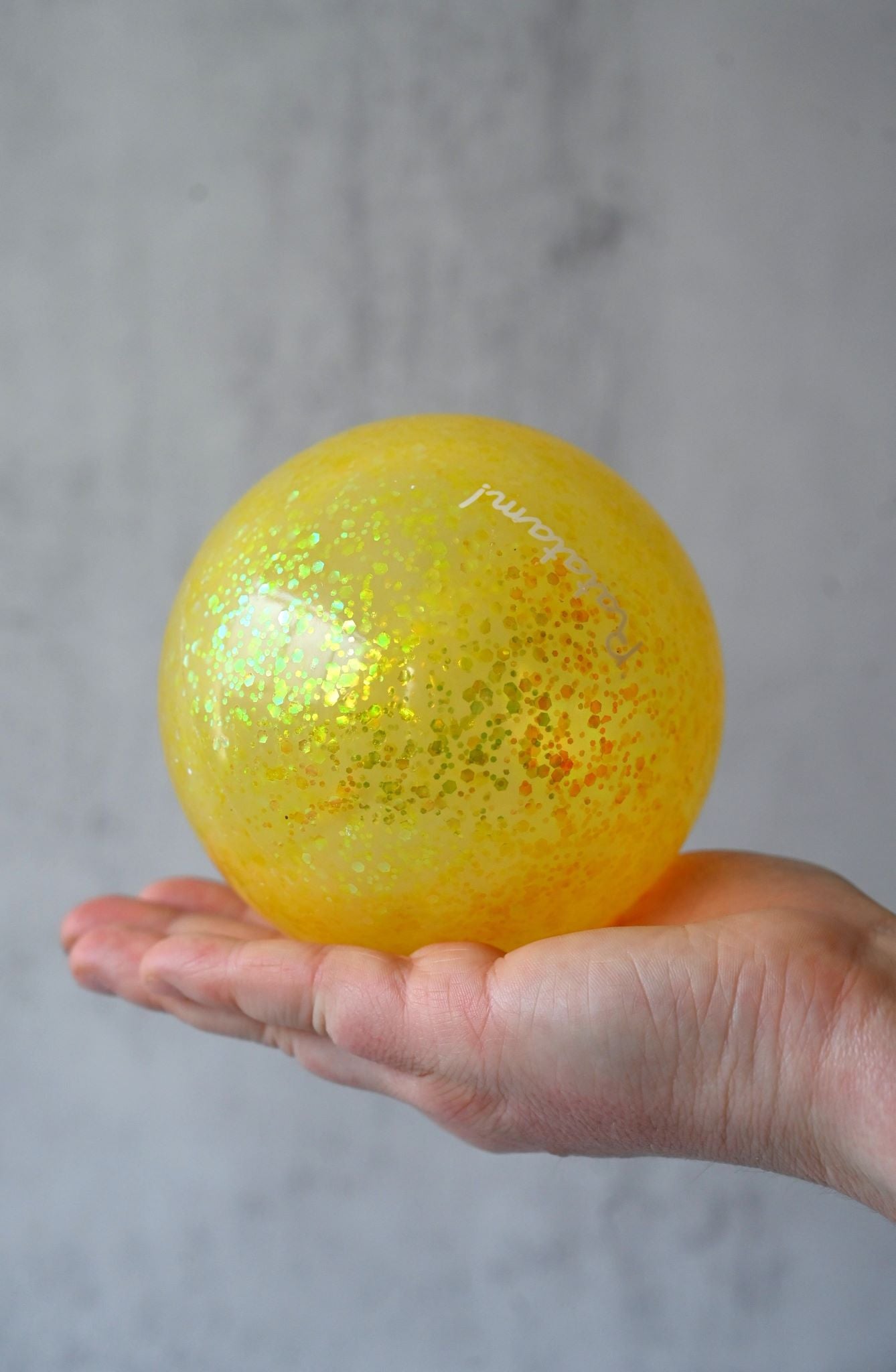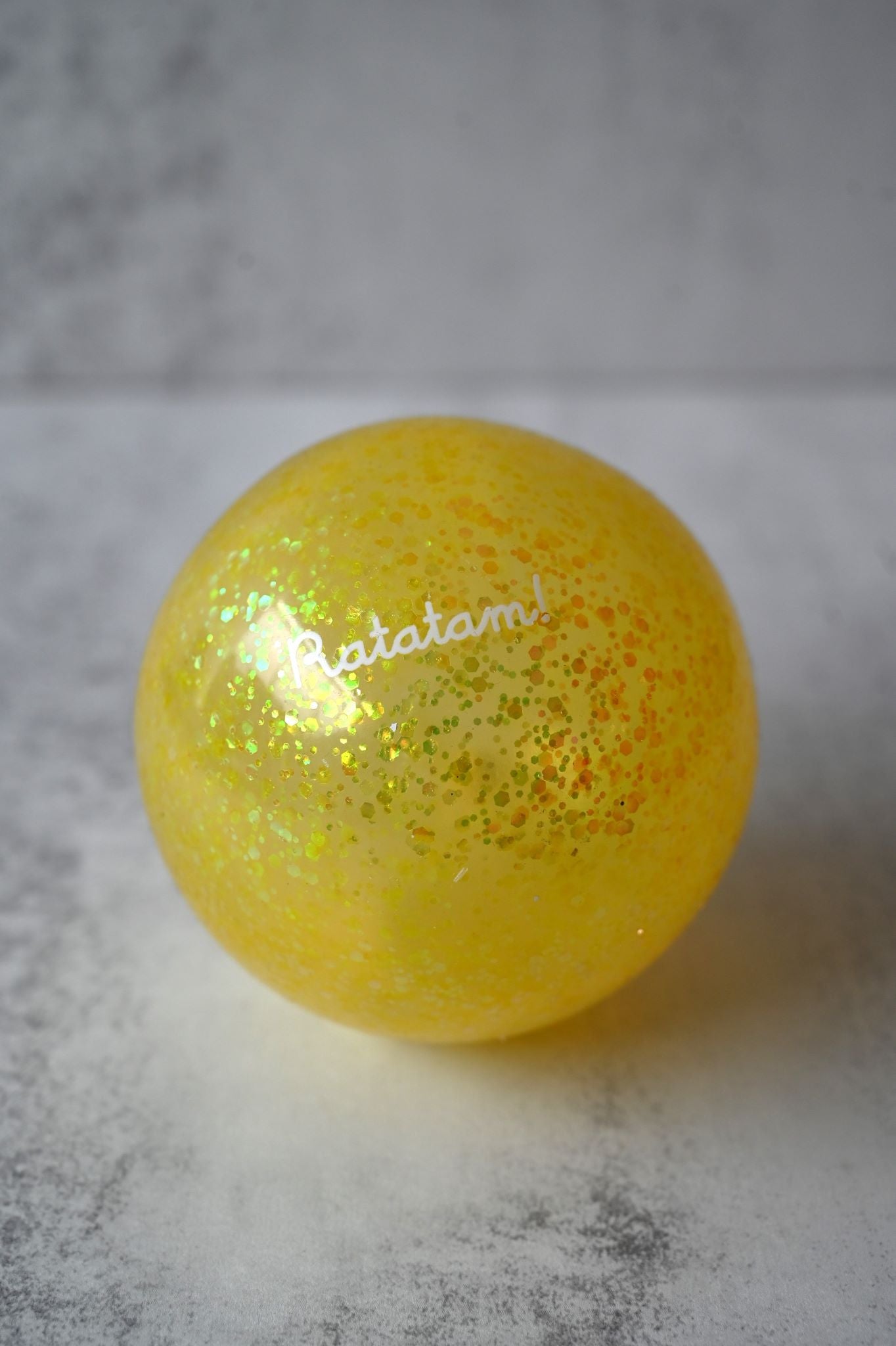 Une balle jaune scintillante pour jouer à la balle avec votre tout-petit, cette balle pour enfants est fabriquée à la main en France à partir de PVC robuste sans phtalate afin qu'elle n'éclate pas lorsque vous et vos enfants serez excités de voir les paillettes scintiller au soleil alors qu'elle vole dans les airs !