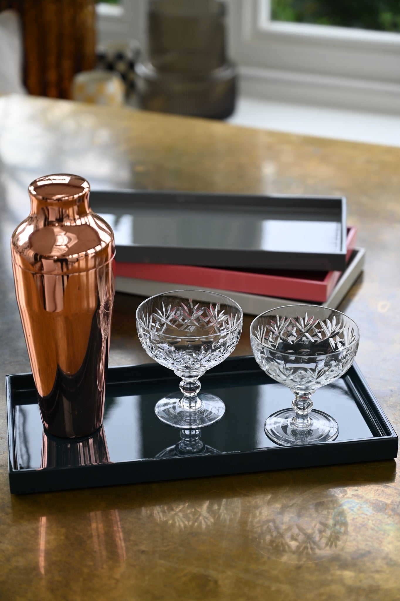 Magnifiquement fabriqué à la main en utilisant des couches et des couches de finition laquée sur du bois pour créer une toile de fond élégante pour vos cocktails et verres, exposer des articles ménagers précieux ou servir le petit-déjeuner au lit de la manière la plus élégante possible.