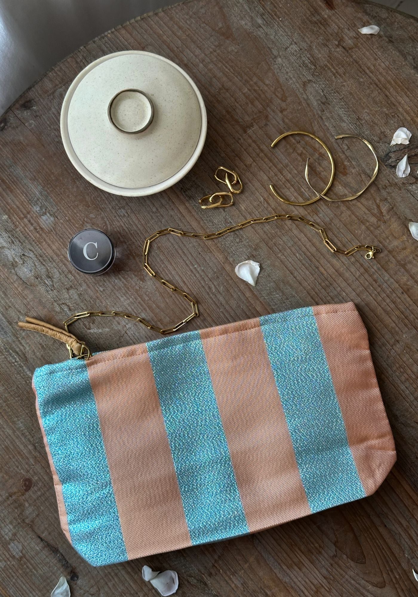 Large Peach and Blue Stripe Pouch