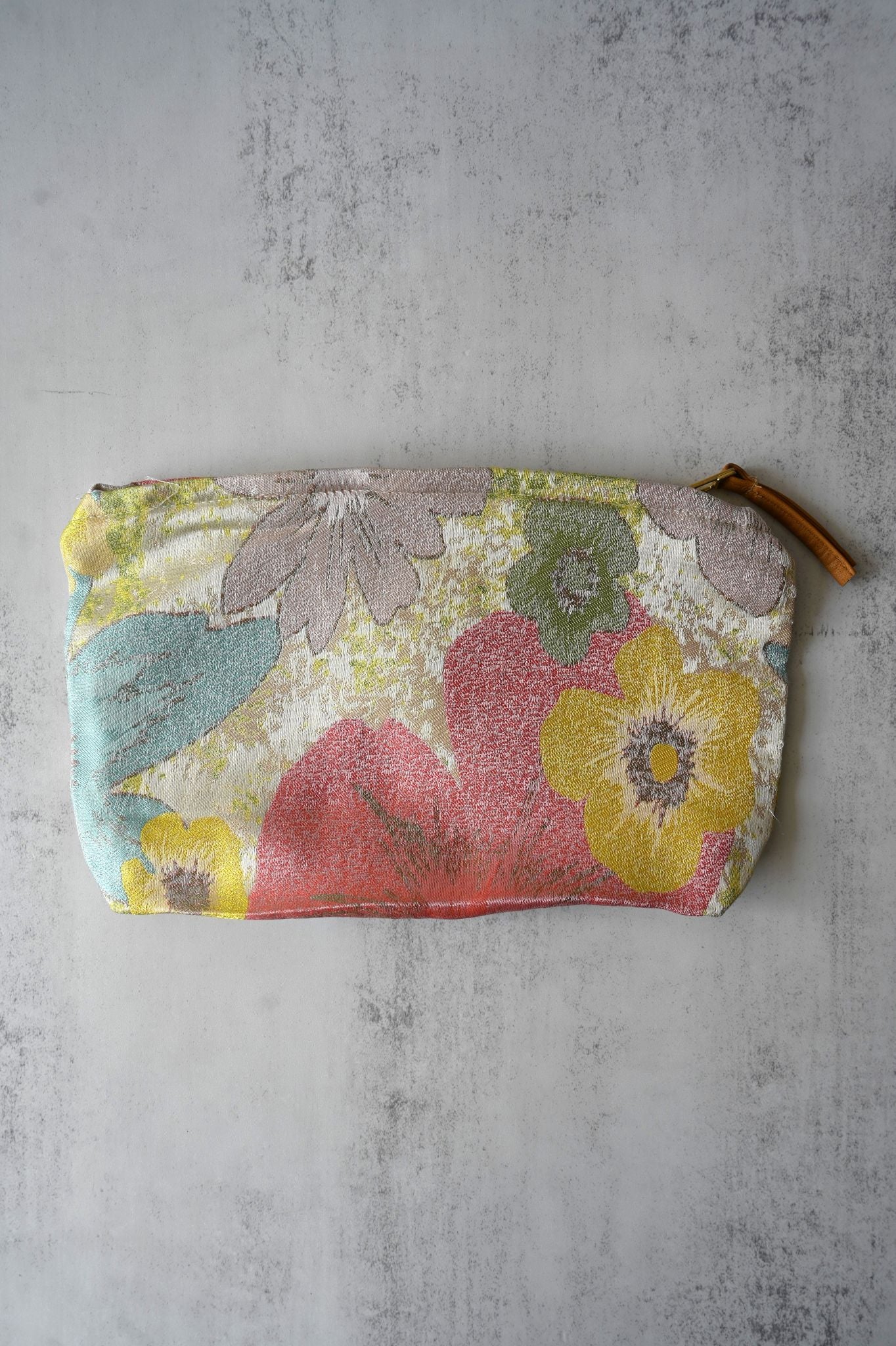 Large Pink and Yellow Vintage Floral Pouch