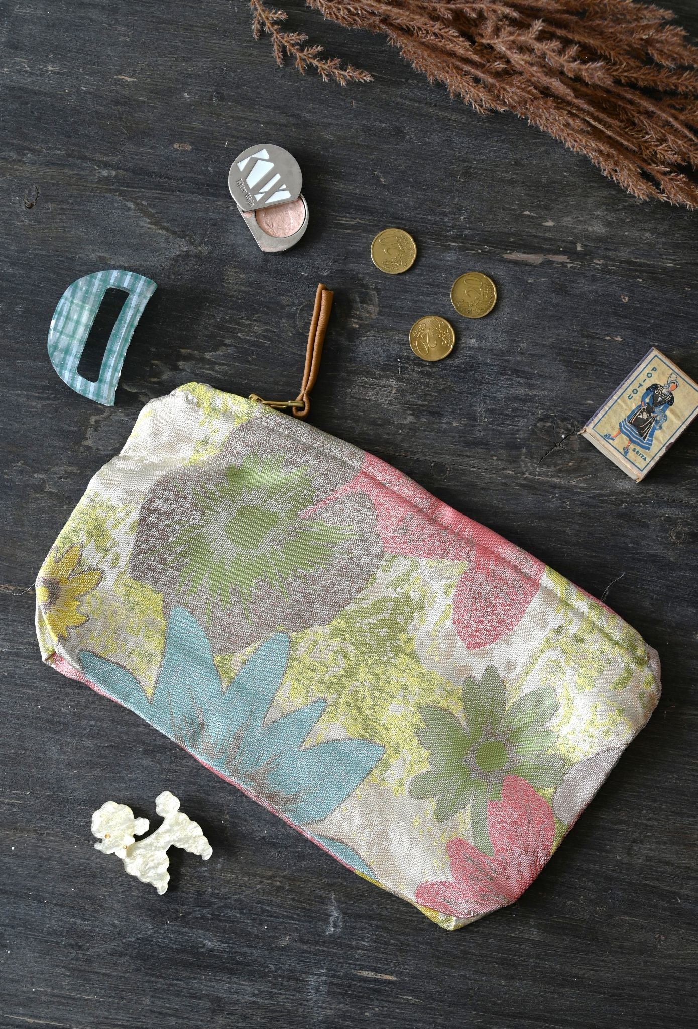 A limited edition luxury cosmetics bag, easy to pack and lightweight for your travels, it has a silky feel to it and a vintage-inspired floral pattern on a subtly silver shimmer backdrop. This is the last of it's kind so you won't find another like this!