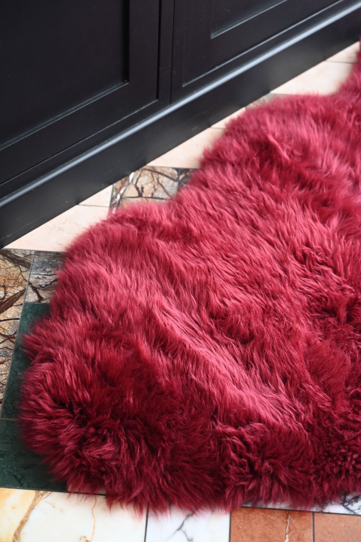 A shaggy wool genuine sheepskin rug made from sheep raised in the lush grasslands of New Zealand known for the exceptional strength and durability of the wool. This textural rug has been dyed in a rich burgundy red that's guaranteed to have you feeling cosy. Place next to your bed so that it's the first thing your toes feel when you sink your feet into on cold winter mornings or settle in to your favourite armchair draped with the softest luxury sheepskin.
