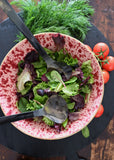 Treat your guests to a delicious eton mess or plenty of fresh strawberries and cream at your next alfresco dinner party within this large serving bowl that has been painted by hand with artistic splashes of berry pink on a light pink bowl, and finished with a brush of gold on the rim. It's dishwasher safe so you it's easy to clean when the party is over.