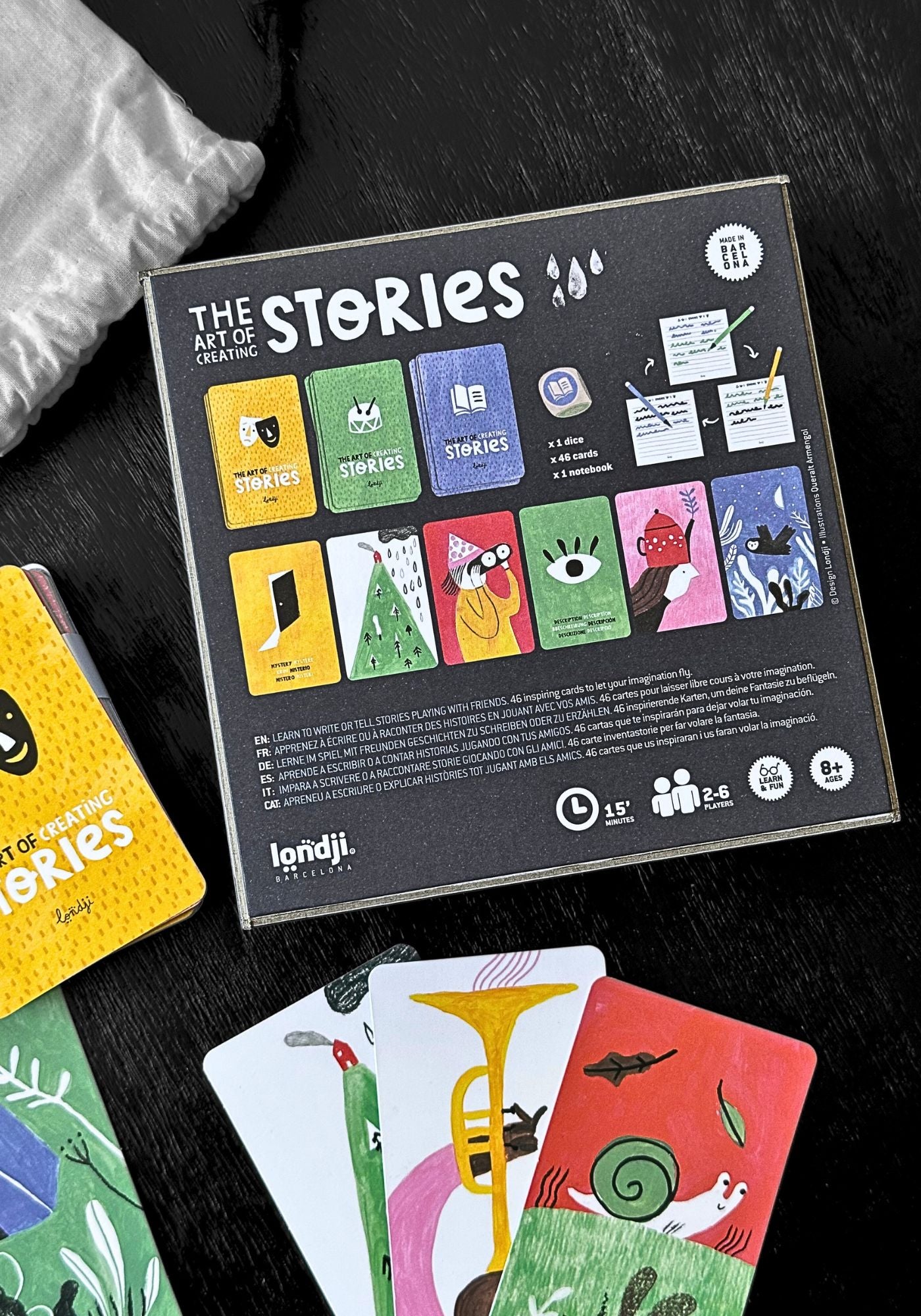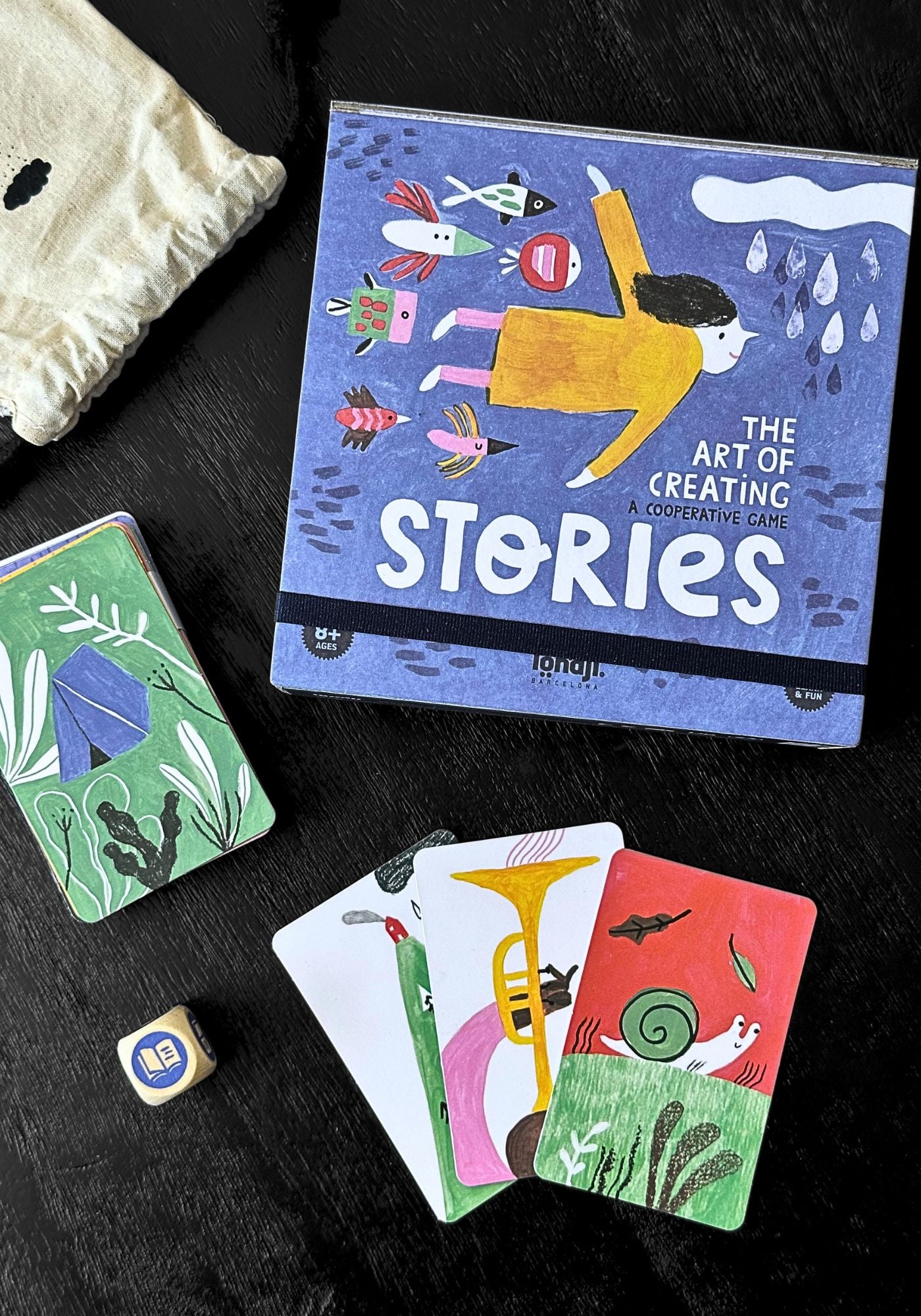 Apprenez à écrire et à raconter des histoires collectivement avec ce jeu de cartes. A tour de rôle, retournez les cartes indiquées par le dé et créez une histoire à partir des illustrations. Le but du jeu est de construire des histoires, mais surtout de laisser libre cours à son imagination. Un excellent jeu d'apprentissage pour enseigner les compétences linguistiques, la lecture, l'écriture et le développement de la créativité.