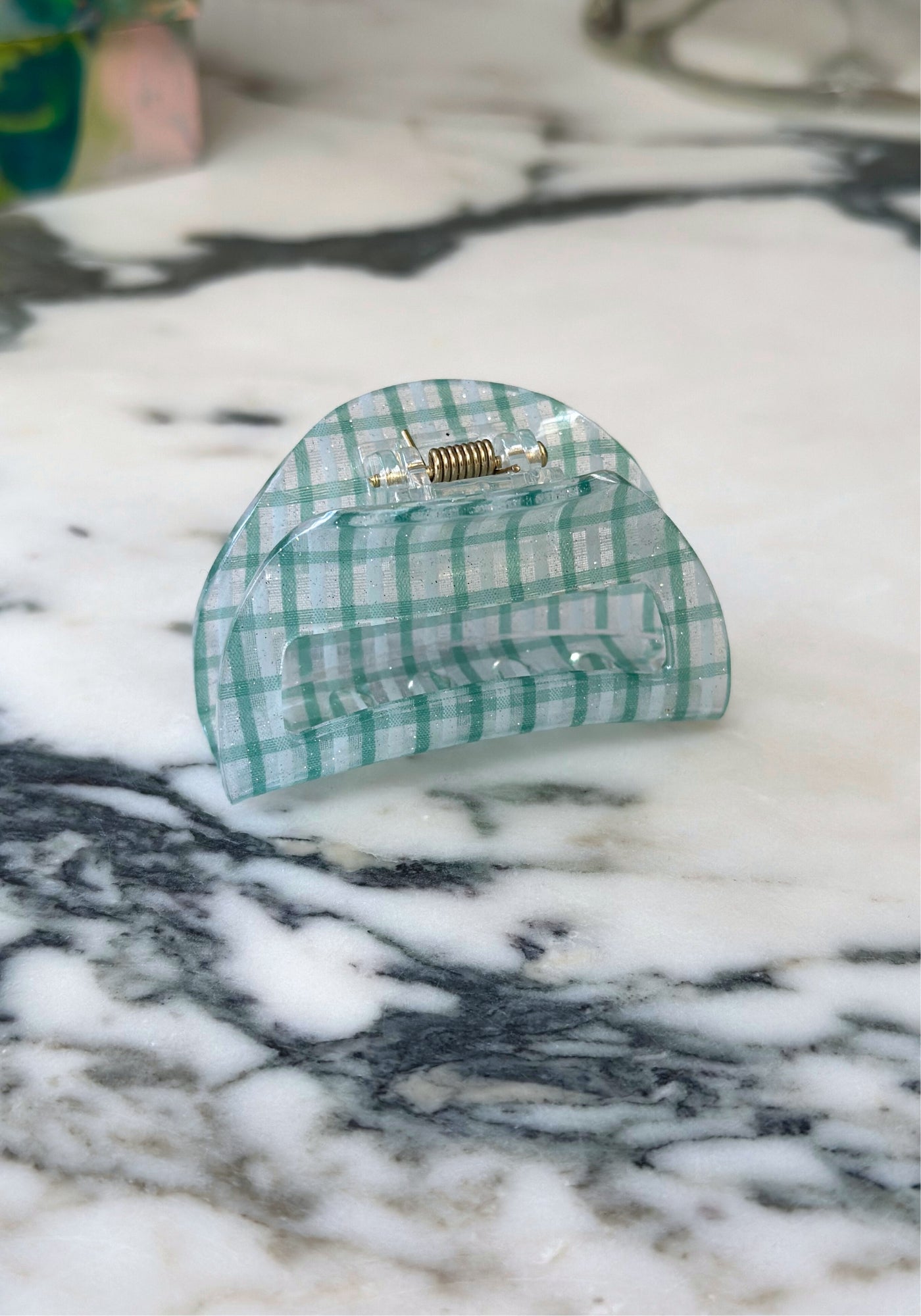Complete your look with a chunky curved hair claw printed with a 90's inspired plaid print, a haircare everyday essential with a contemporary twist.