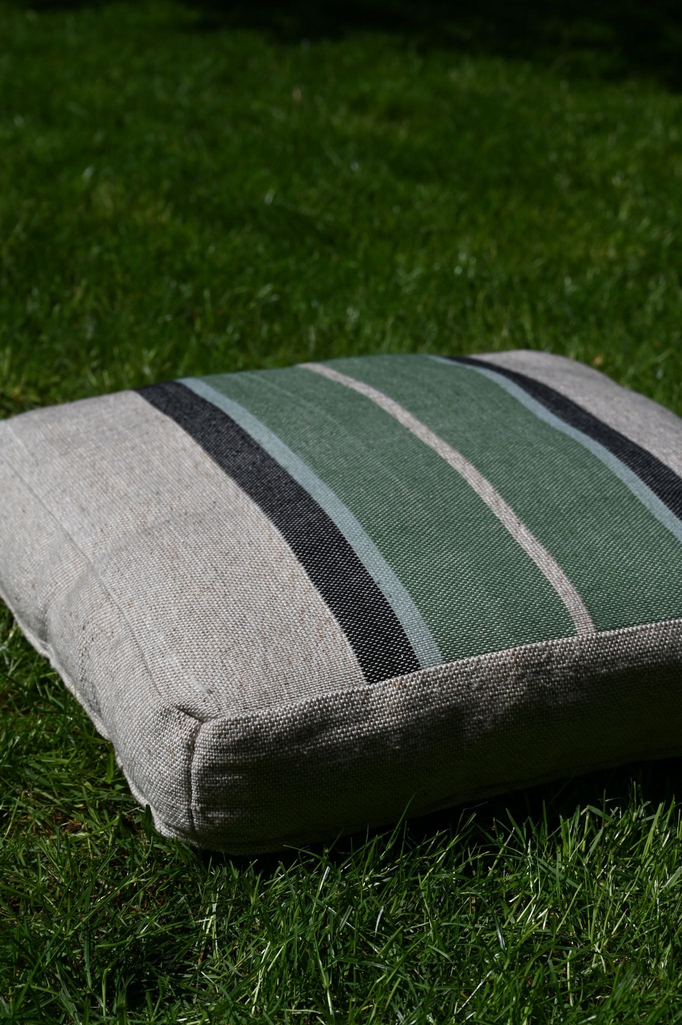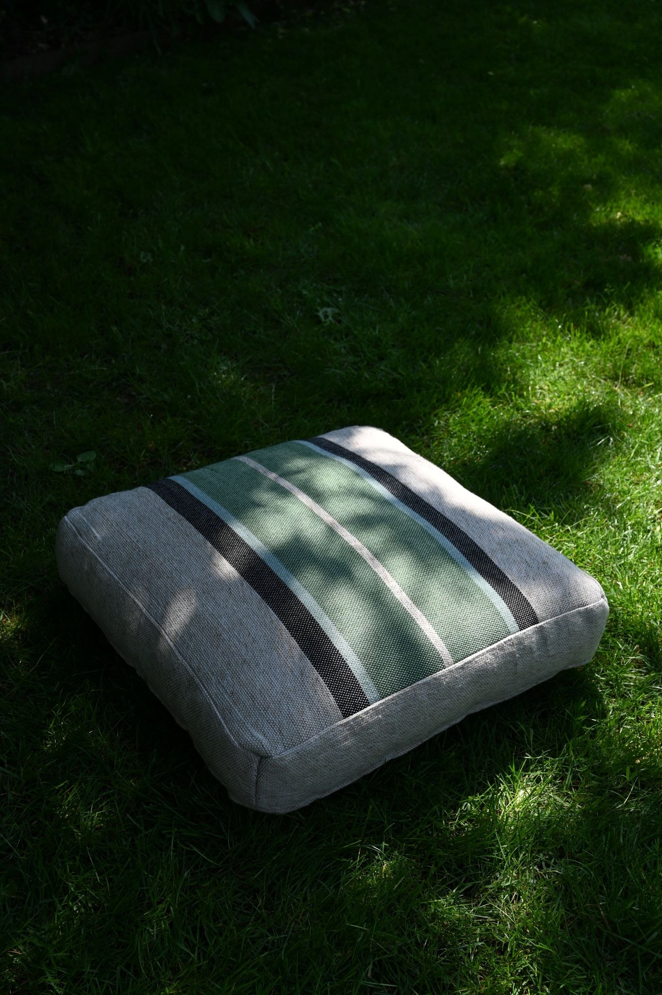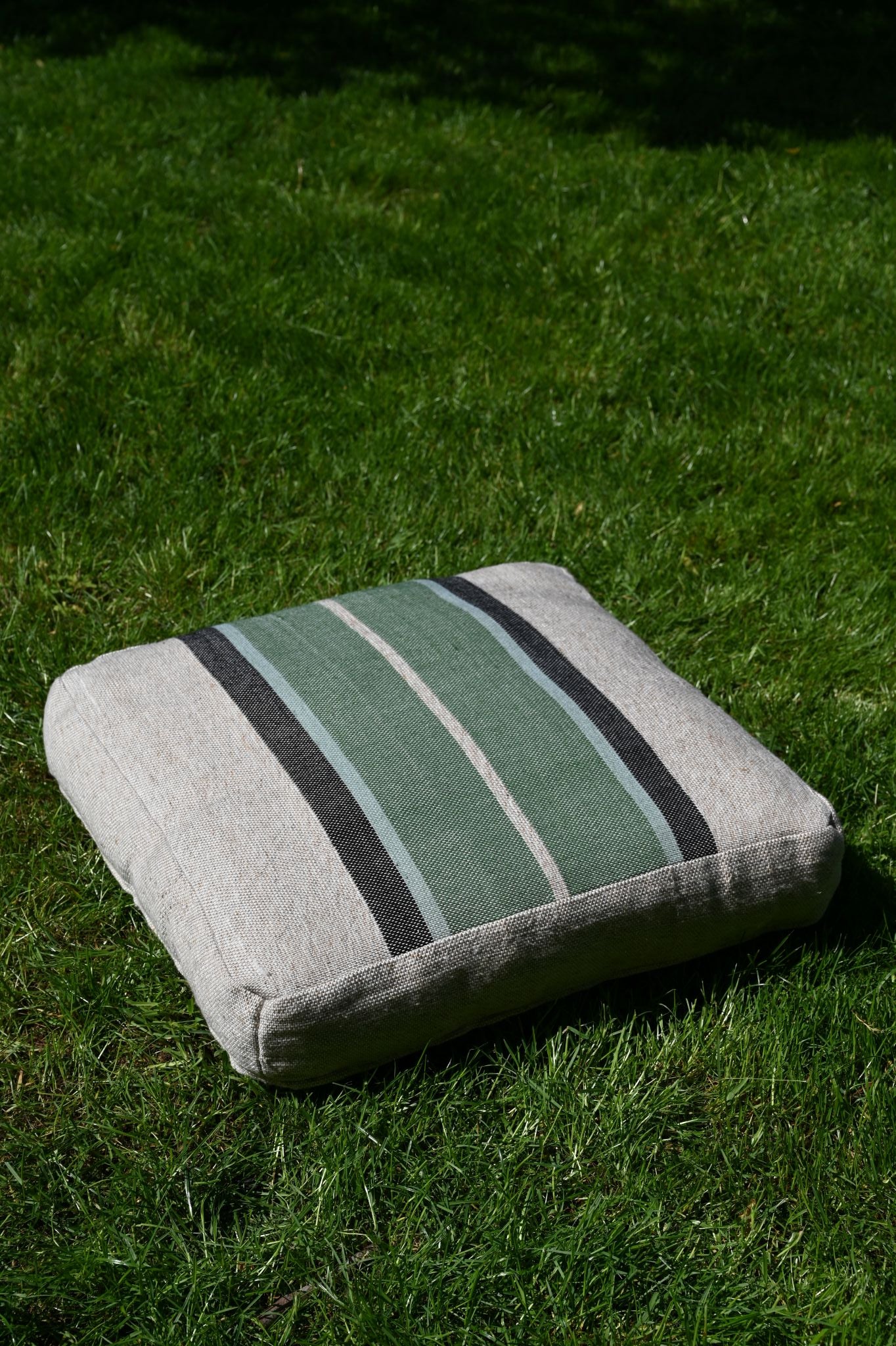 Find your perfect seating spot with this large handmade cushion. It's made from a sustainable polyester so it's sturdy and hardwearing for everyday use yet with its handsome Mediterranean-inspired striped print, you can bring them out for special occasions like a floor picnic with the family or a feast of nibbles and tapas.