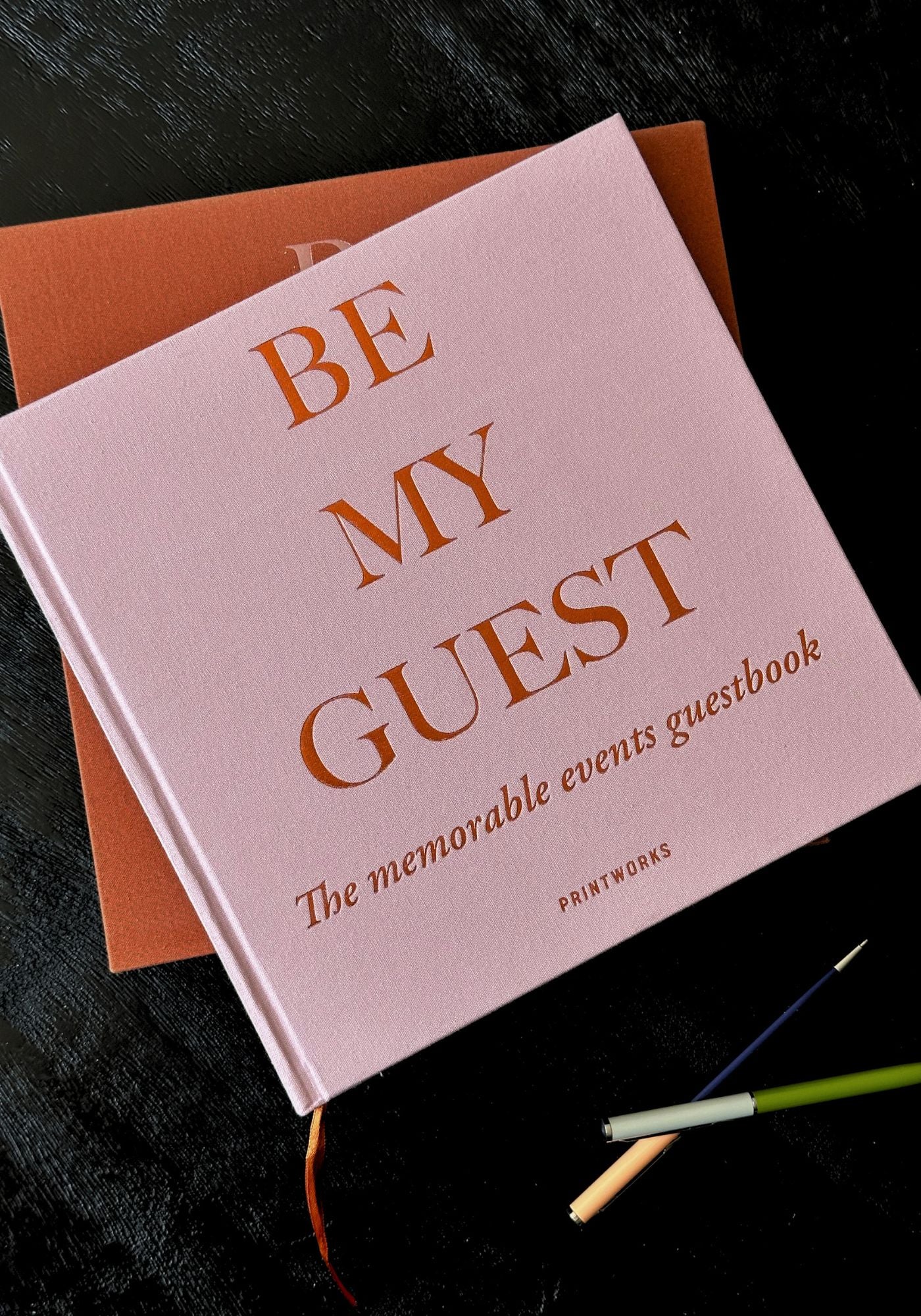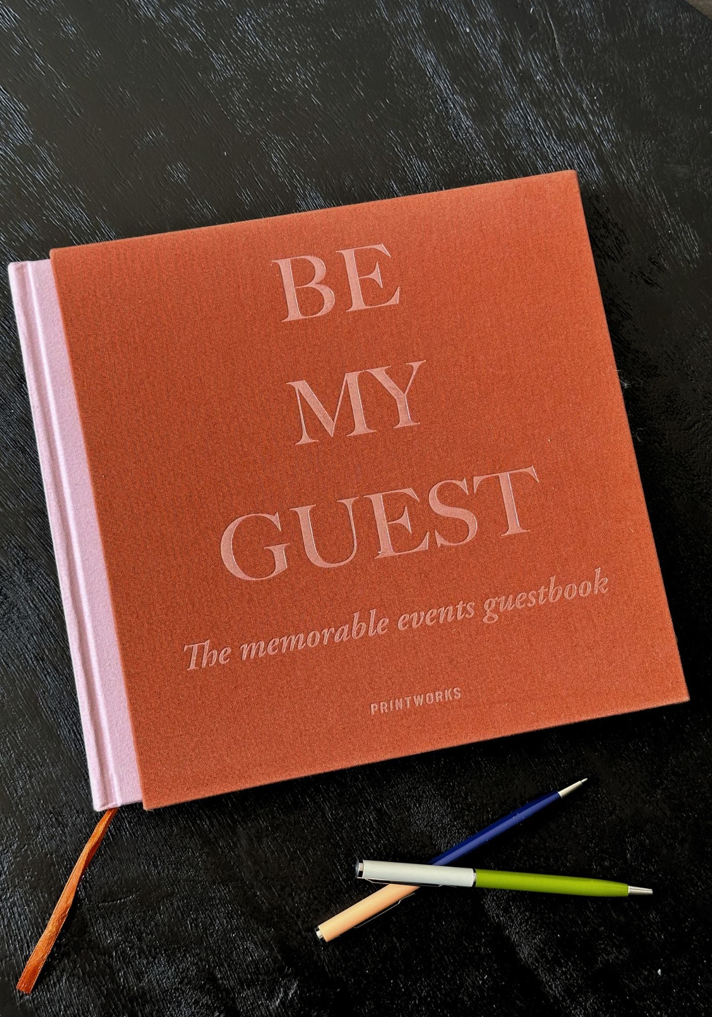 Welcome your guests into your home with this luxury coffee table style guest book designed to be a treasured keepsake. It's perfect for those who love to host events and parties or have the best guest room complete with hotel-style bedding and mints on the pillow. Gift to the perfect host so that you can leave a glowing review with every future visit. This book includes 100 pages, clothbound in rust orange and pink with a coloured ribbon bookmark and hardboard sleeve for storing on a shelf.