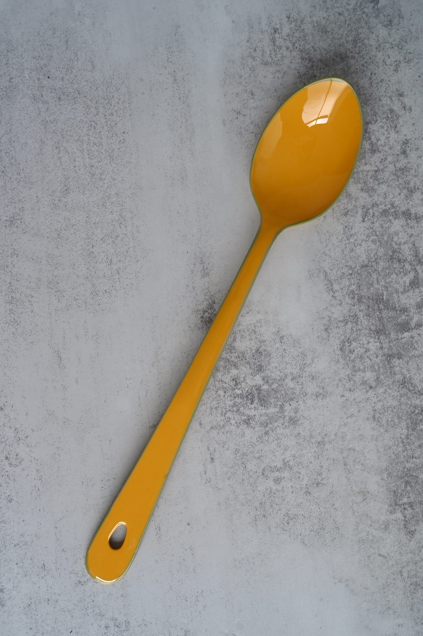 Brighten up baking days with a mixing spoon made from stainless steel in juicy mango yellow with a zesty lime green border to give it that classic vintage enamelware feel with a tropical edge.
