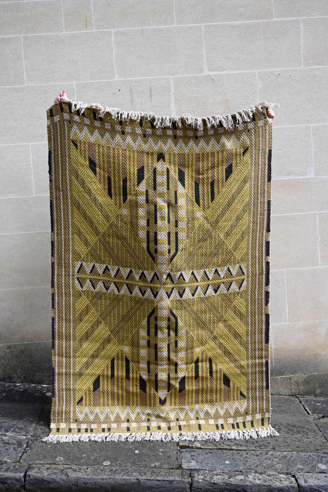 This retro-inspired rug feels like a 1920's soft furnishing in an Art Deco club with its geometric pattern in citrus green, black and cream. Made from a sturdy cotton and jute blend with cream tassel fringing either end, it's ideal when you're a minimalist who actually does love pattern or if you're looking to mix up a cocktail of texture and colours in your eclectic home.