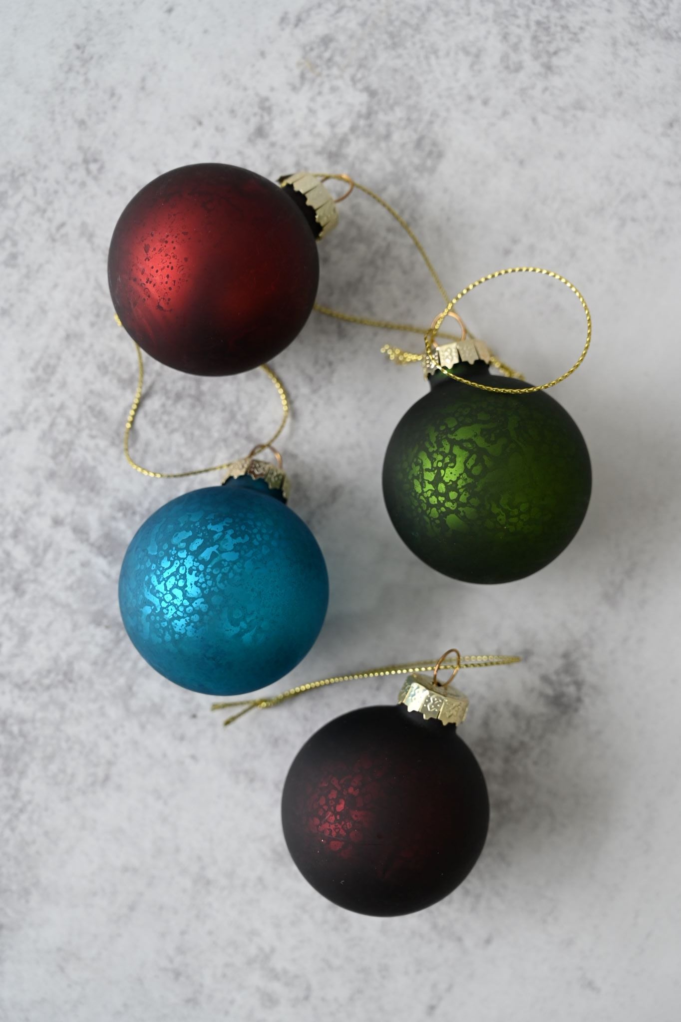 These small glass baubles each have an antiqued finish that make them look like they've been in your grandmother's Christmas collection or tucked in the attic for years.