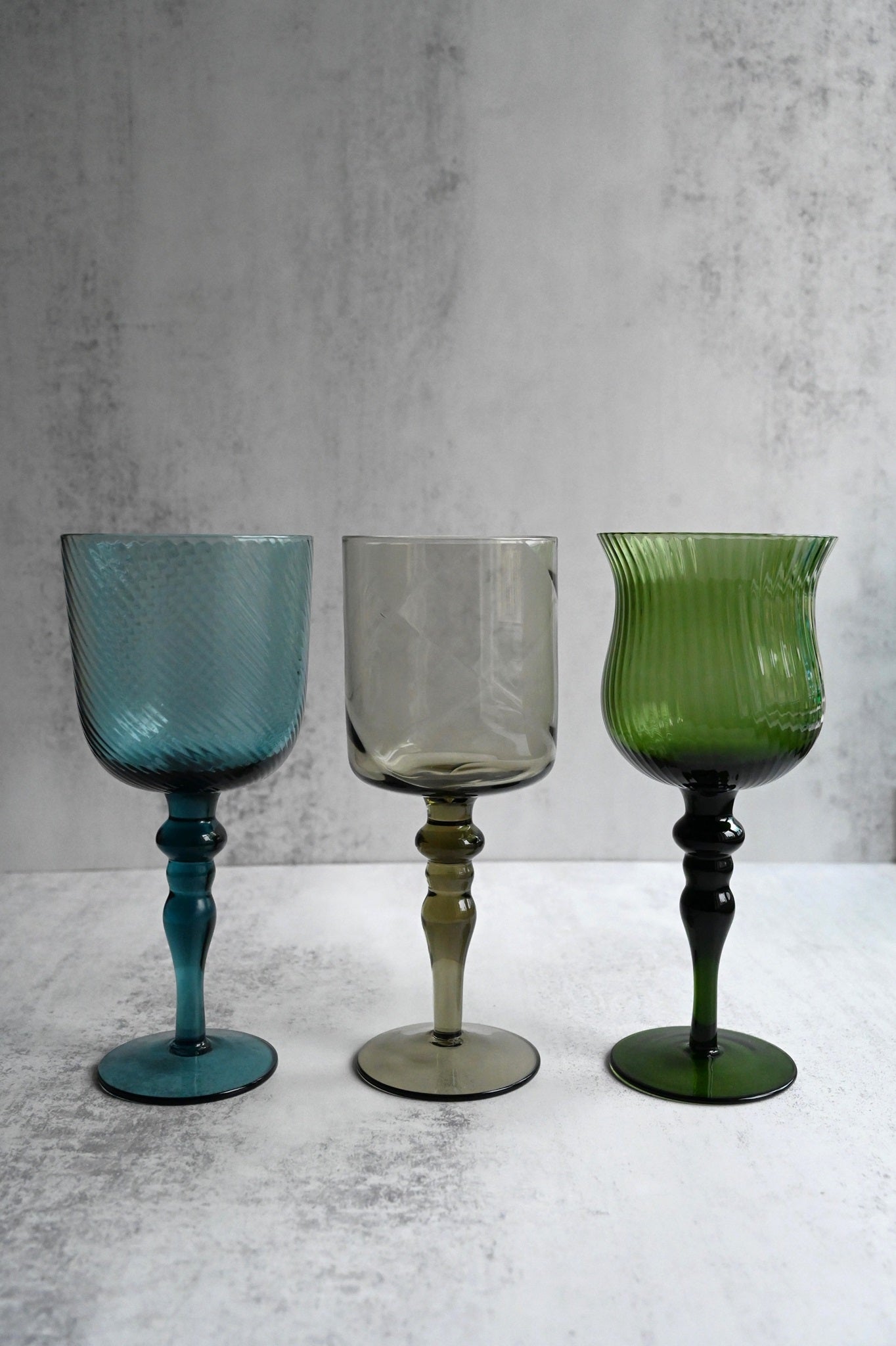 Adorn your dinner party with this set of six art nouveau-inspired goblets, each one has its own individual style from the pattern of the glass to the shape of the coupe so that your guests can choose the one that speaks to them.