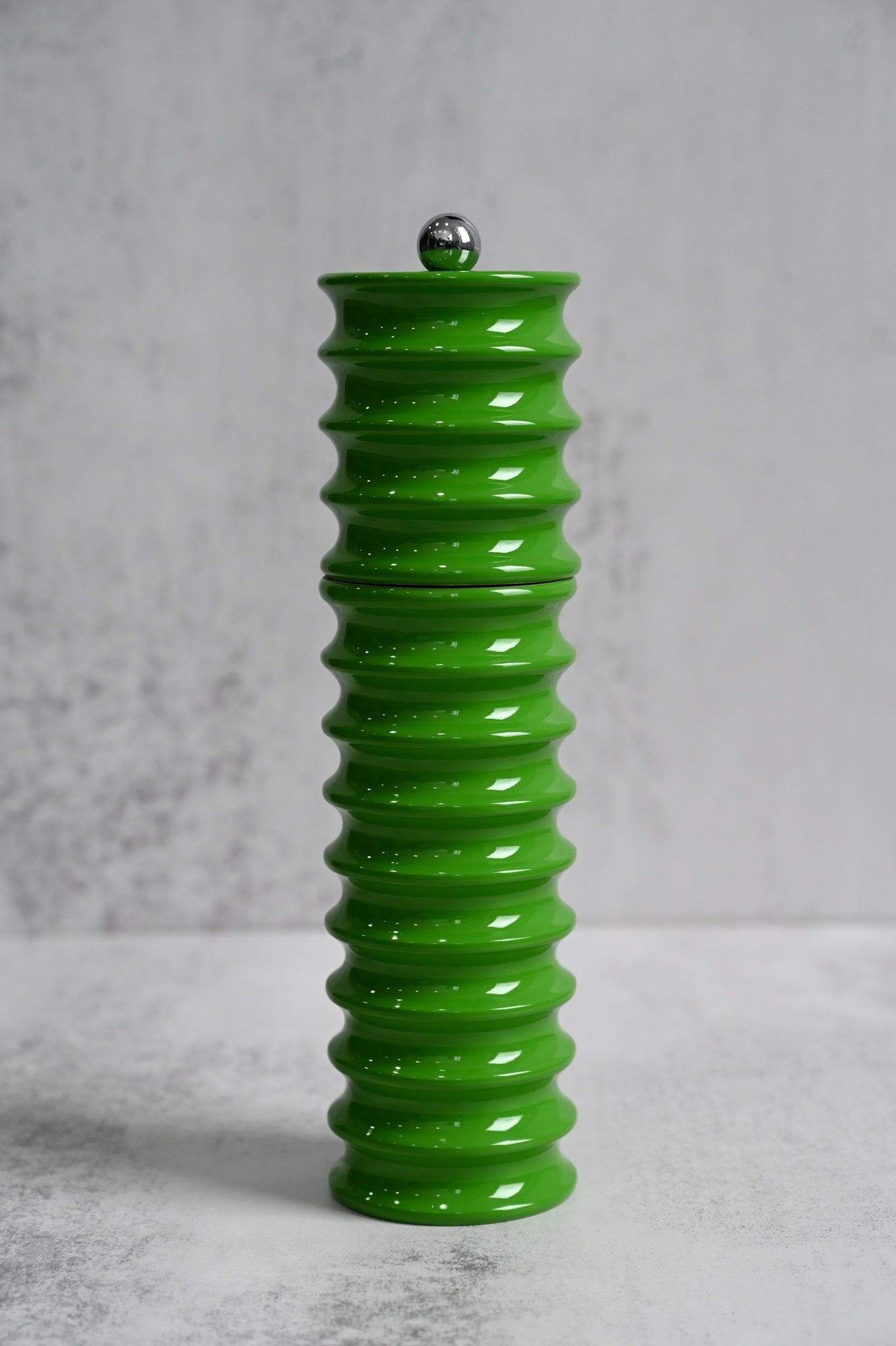Not enough salt on your fries? Let's twist again with this colourful and sculptural grinder from Addison Ross; a family-owned and run British brand whose roots lie in London Belgravia in the seventies and are now based in the Cheviot Hills of Northumberland. In vintage colours, each mill is made from solid rubber wood that has been coated with eight layers of high gloss lacquer, polished by hand between each coat to create the smooth tactile finish. The twisted shape feels perfectly at home in your hands. Choose whether you want to serve salt or pepper with the interchangeable S and P stainless steel knobs.