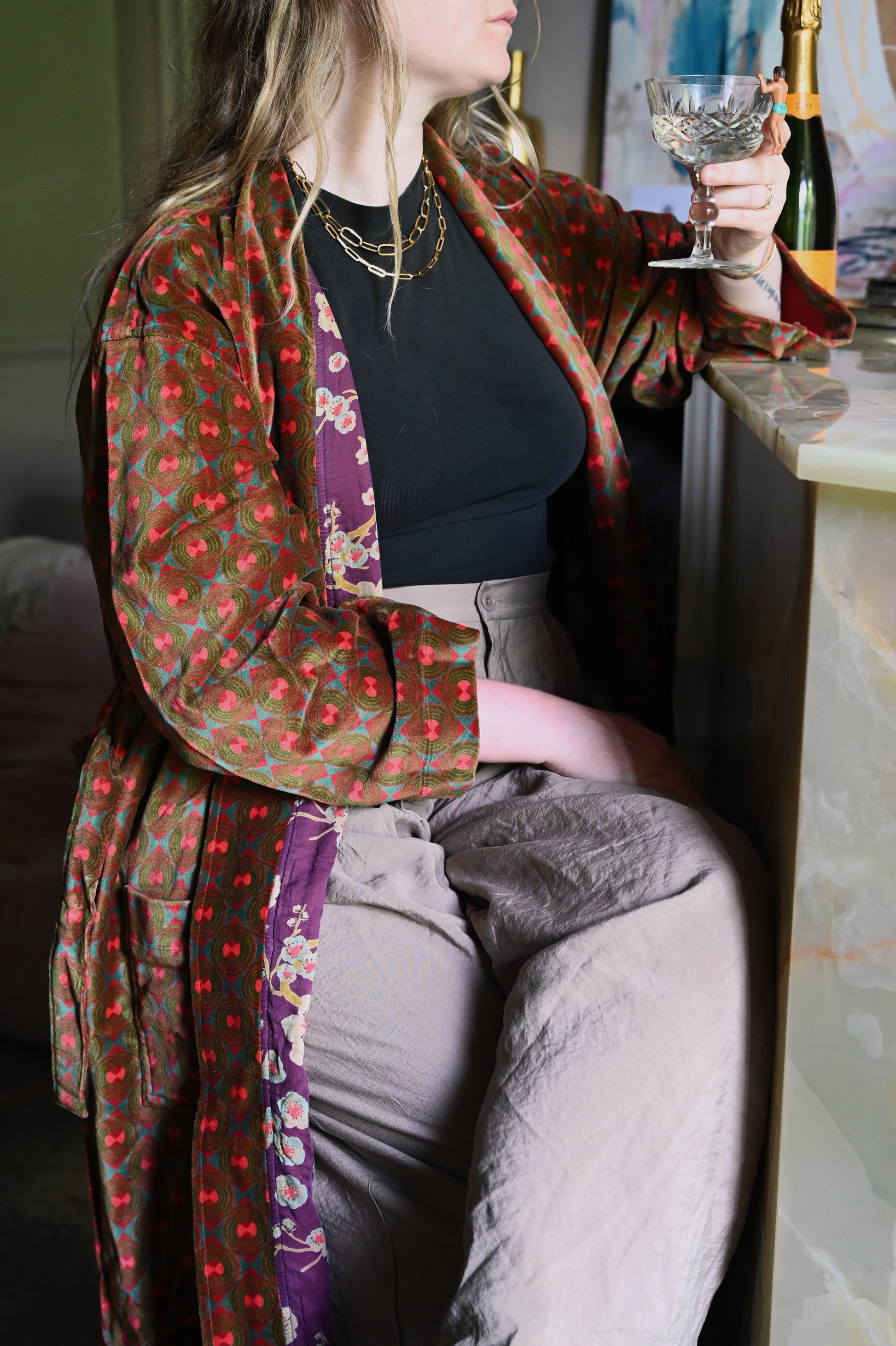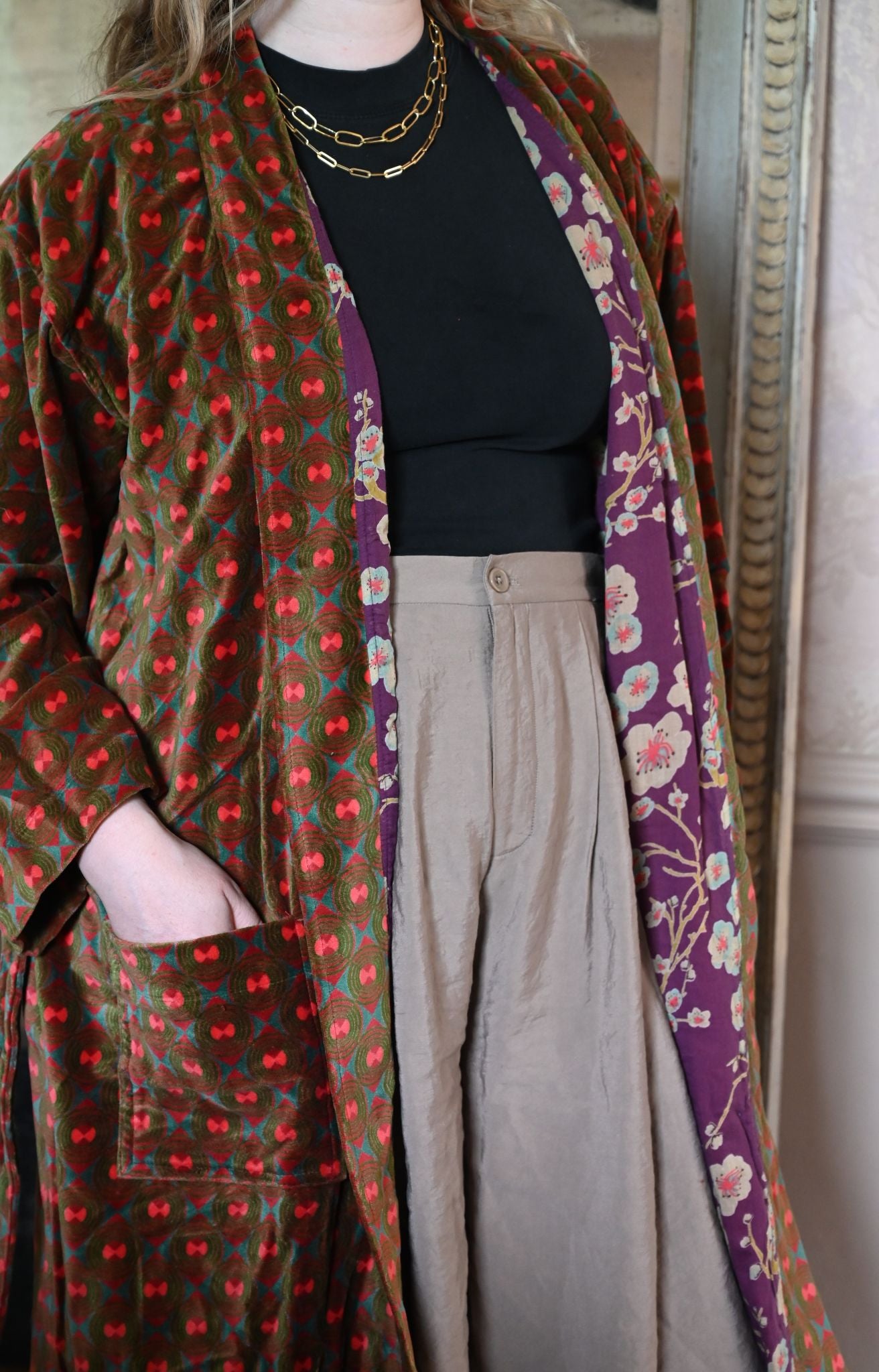 Deliciously decadent, these robes are made from 100% cotton velvet with a contrasting cotton lining in an alternating print with an elegant kimono-style silhouette at the shoulders and waist designed to flatter all body types.