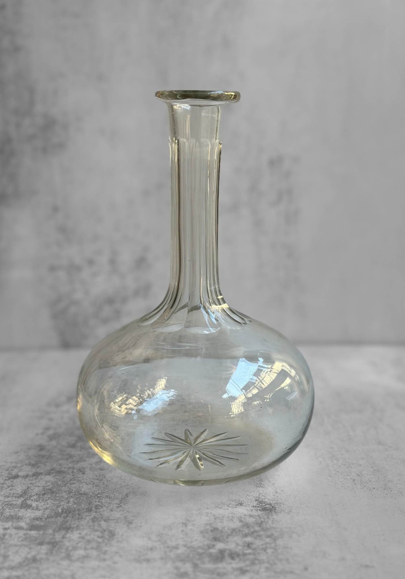 A vintage glass bottle with a starburst design pressed into the base that could either be a fine stem carafe for your home wine bar or a refined flower vase thanks to its simple bottle silhouette. For those who love a barely-there-minimalist look, this bottle lets you do the creative talking however you choose to style it.