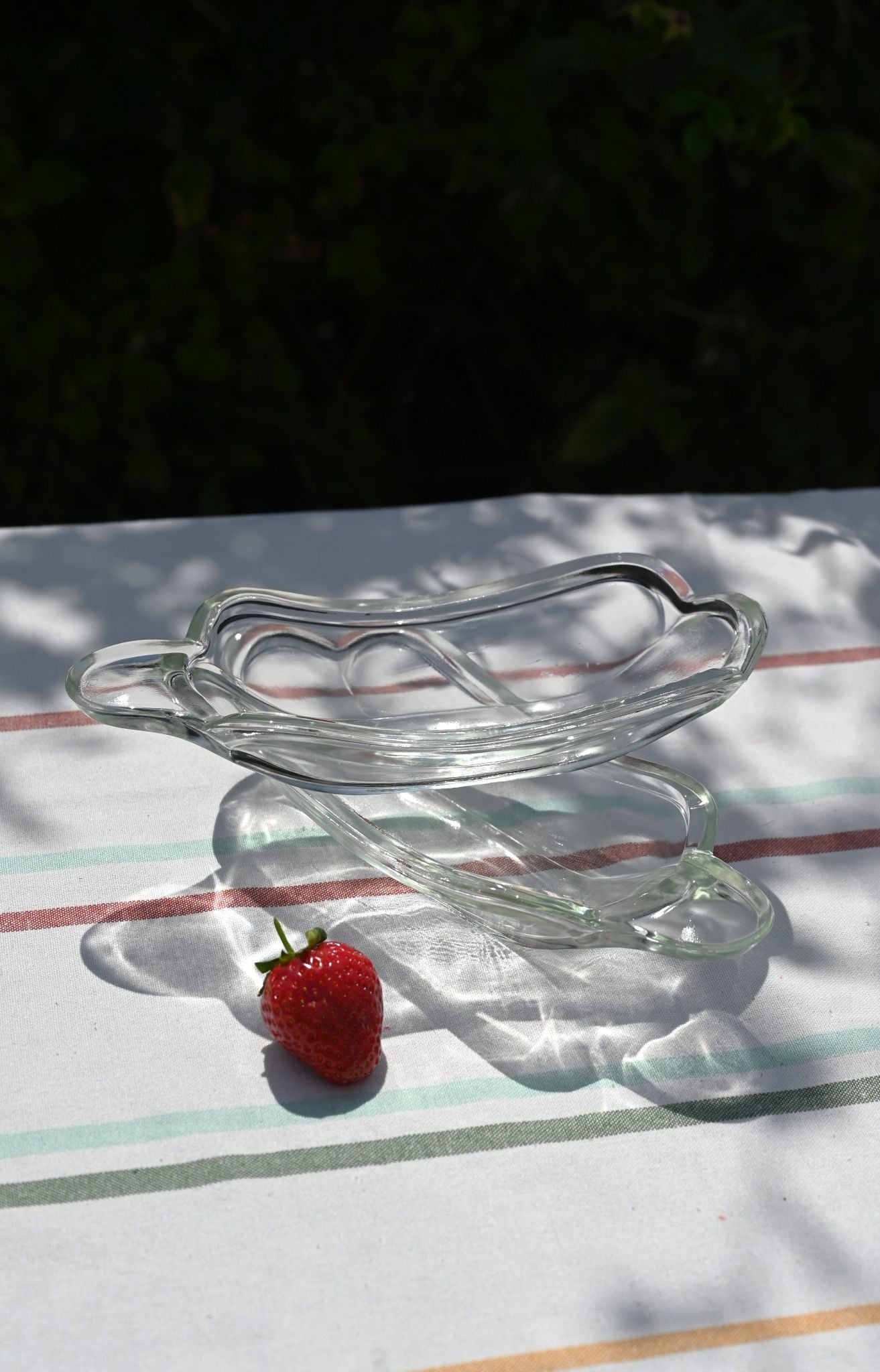 A set of truly vintage diner style banana split dishes that we believe are from the US circa 1930 and designed for the iconic American diner dessert. Pile these clear glass dishes with a halved banana, plenty of ice cream, whipped cream and chocolate sauce and enjoy a retro delight. Ideal for summer barbecues with the kids.